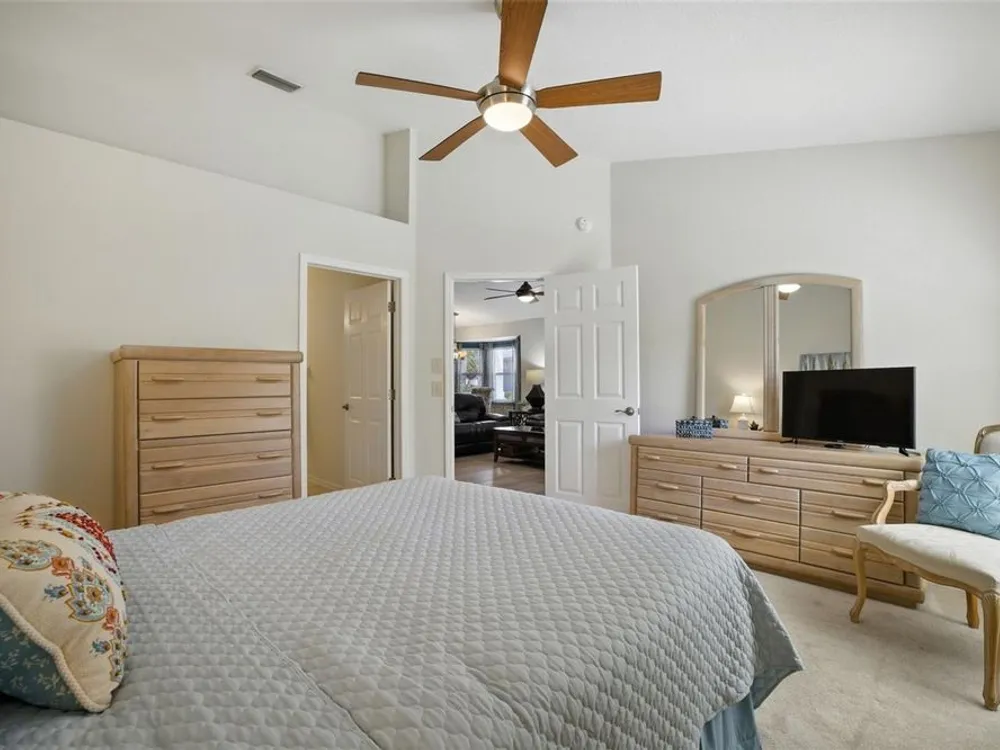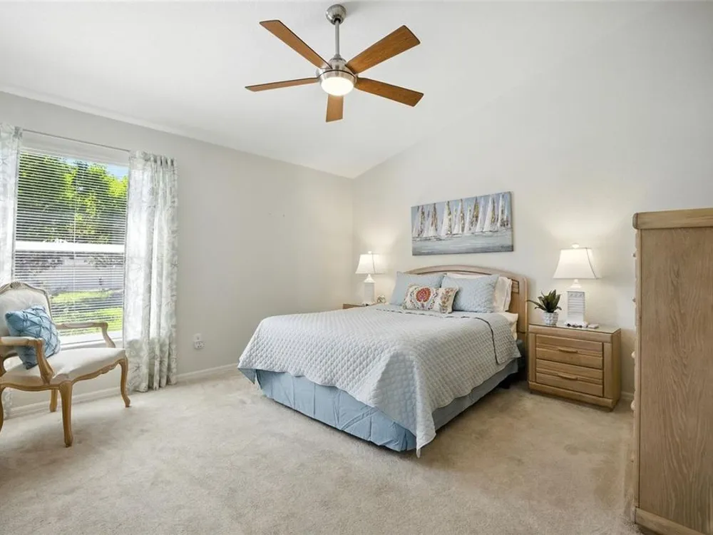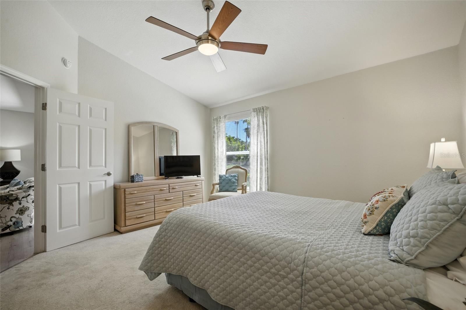 - Ceiling Fan(s), Eat-in Kitchen, Living/Dining Room, Open Floorplan, Main Level Primary, Split Bedrooms, Stone Counters, Vaulted Ceiling(s), Walk-In Closet(s), Window Treatments