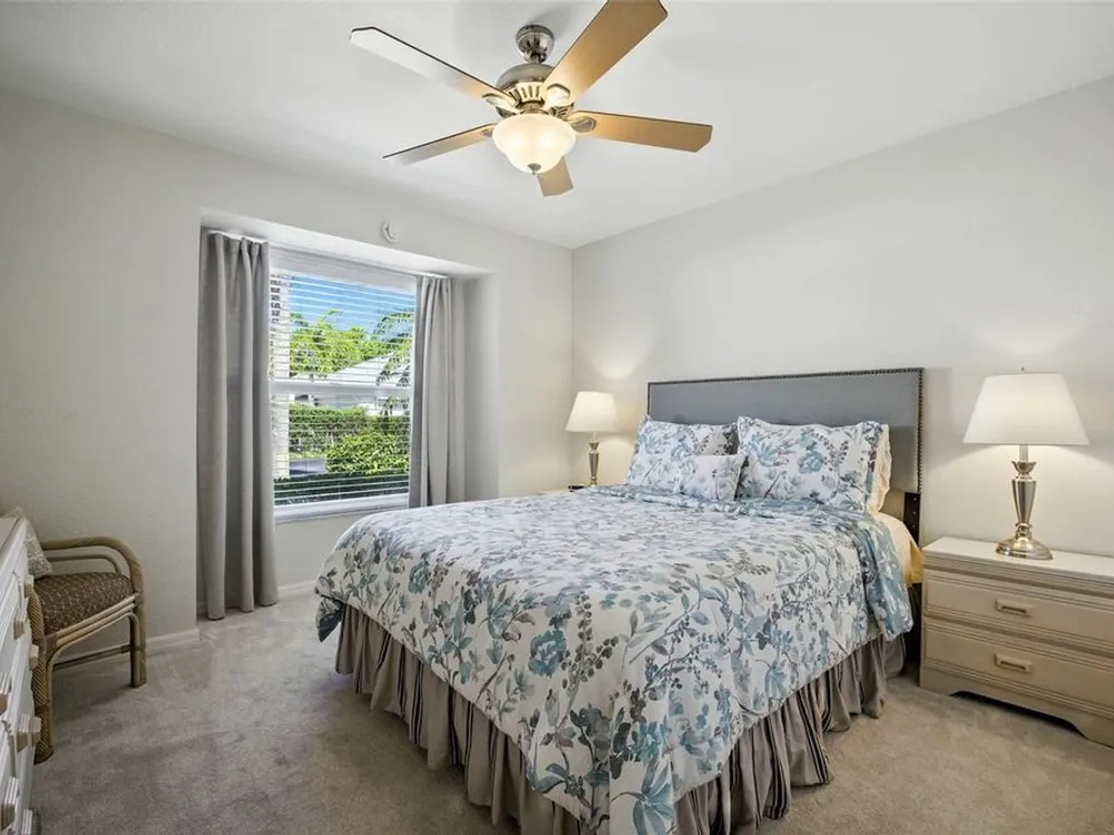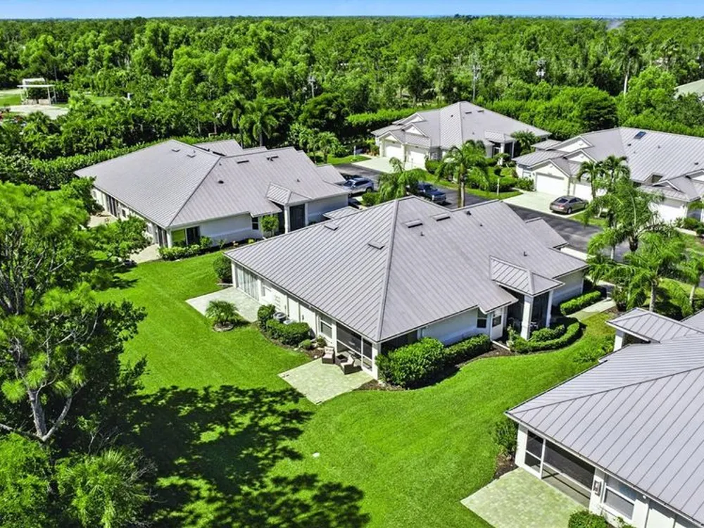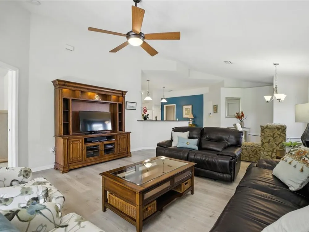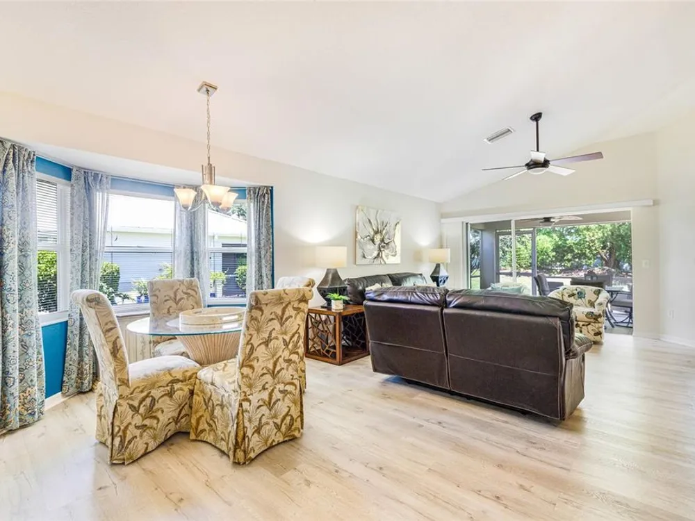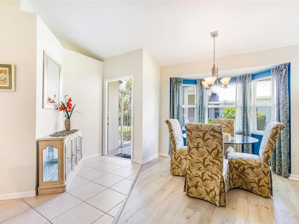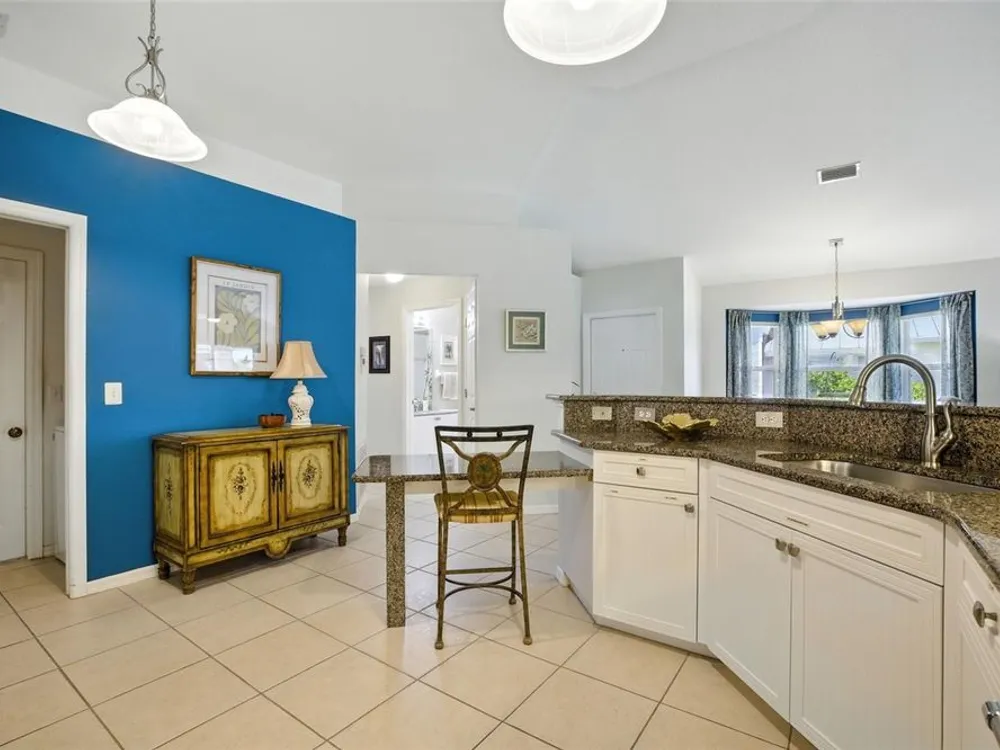 Looking for the perfect Florida get away? This maintenance-free two bedroom villa is located in the gated resort community of Burnt Store Marina and offers a fabulous option. Move right in without lifting a finger as it comes with a tasteful turnkey furniture package so you can settle in and start enjoying paradise right away. This desirable end unit boasts a pleasing open floorplan filled with an abundance of natural light and soaring ceilings. The expansive kitchen features abundant cabinetry finished with top molding, tile backsplash and granite countertops. A handy built in dining table and breakfast bar provide casual dining options. A new Frigidaire refrigerator was added in 2025, and dishwasher and disposal a few years ago. Additional storage is available in the convenient pantry closet. The inviting living and dining area boasts neutral laminate flooring and sliding glass doors that open to a charming tiled, screened lanai. From here, you’ll enjoy a serene, park-like backyard view, along with a bonus paver patio—perfect for morning coffee or evening relaxation. Delight in the tropical breezes when you open the door to the front and back lanais and feel like you have found heaven. The generously sized primary suite enjoys a dramatic vaulted ceiling and large window overlooking the yard, walk-in closet and ensuite bathroom with a tiled walk-in shower and stone-topped vanity. The guest bedroom is located on the opposite side of the residence and features a bump out large window to welcome in the Florida sunshine with an adjacent upgraded guest bath creating a comfortable and private space for visitors. The laundry room leads you to the attached oversized one car garage to store all of your recreational gear. The complex boasts a handsome metal roof and takes care of all exterior maintenance. The monthly fee also includes internet and cable. Best of all is the incredible lifestyle that is offered at Burnt Store Marina which offers an impressive array of amenities, including a 27-hole golf course, waterfront dining, fitness and racquet club, and the largest deepwater marina on Florida’s west coast. Whether you’re boating, golfing, playing pickleball, or simply lounging by the pool, every day feels like vacation.