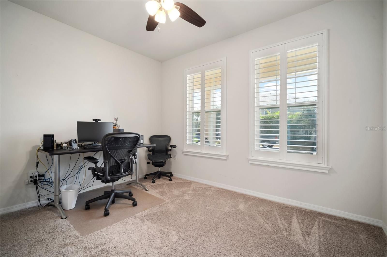 - Ceiling Fan(s), Chair Rail, Eat-in Kitchen, High Ceilings, Open Floorplan, Solid Surface Counters, Stone Counters, Thermostat, Walk-In Closet(s), Window Treatments
