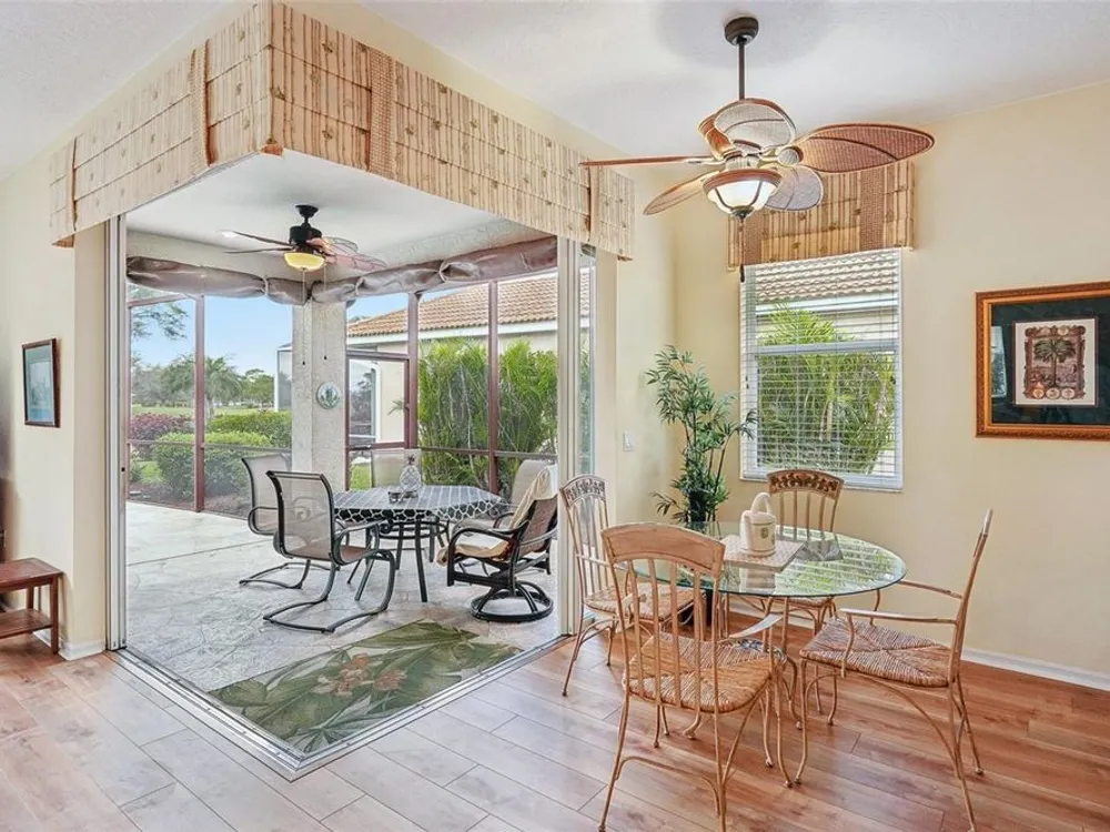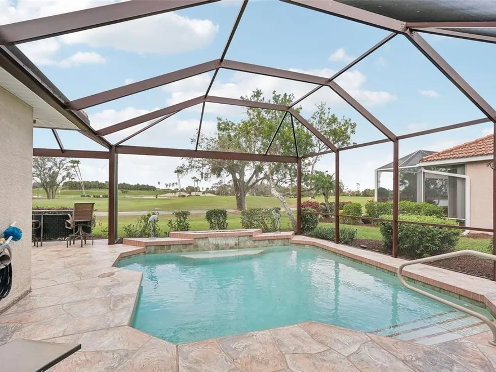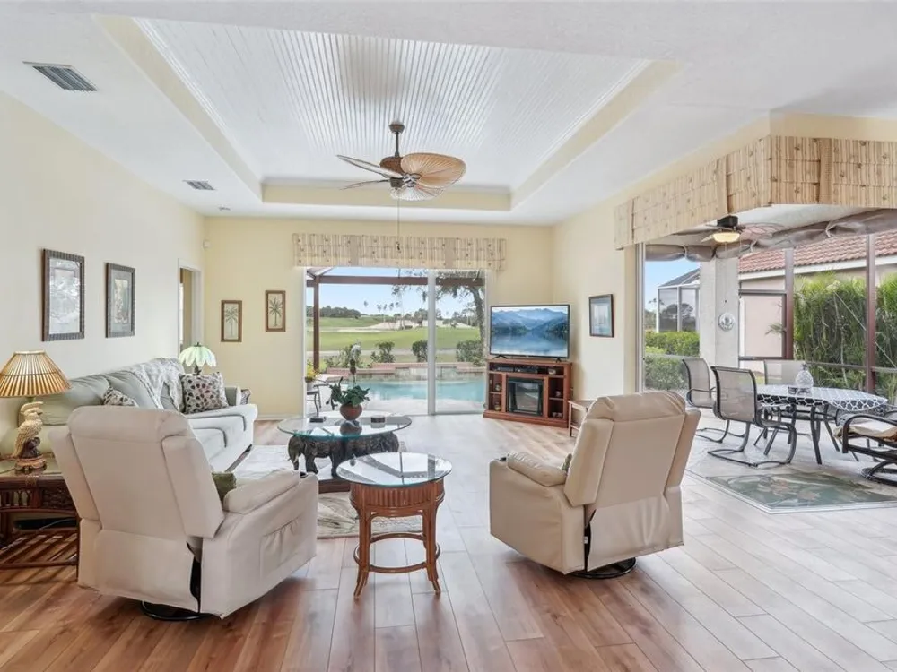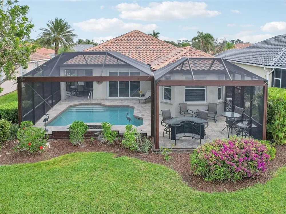 AMAZING PRICE IMPROVEMENT—NOW $449,500. 5105 Pine Shadow Lane is a stunning, turnkey Heron Creek home—fully furnished inside and out. This single-owner 3BR/2BA builder’s model (1,955 sf) blends comfort and easy elegance with an open, functional layout ideal for everyday living and entertaining. Luxury vinyl plank floors anchor the main living areas in warm, neutral tones. The great room flows to a defined dining area, breakfast nook, and a well-appointed kitchen with abundant cabinetry, generous counters, and storage. Bedroom 3 offers flexible use as a den/office/guest room. Major updates deliver peace of mind: 2023 roof & lanai cage, 2023 HVAC & water heater, upgraded pool pump, plus a Generac whole-house generator (2020; transferable 5-yr warranty). “Disappearing” sliders open to an oversized wrap-around lanai with a waterfall-edge gunite pool and picture-perfect golf-course views—true indoor/outdoor Florida living. Home sits in non-flood Zone X within a gated community and has no CDD. Oversized 2-car garage includes a GOLF CART. A 15’ flagpole is installed on site. Monthly HOA includes high-speed fiber-optic internet & full TV via Hotwire Vision, lawn/landscape, and irrigation. Heron Creek Golf & Country Club features 27 holes of championship golf, Har-Tru tennis, fitness center, resort-style pool, and a beautiful clubhouse with pro shop, card room, grill room, and restaurant. Club membership is required; three tiers are offered beginning around $268/mo (buyer to verify). A $10,000 Platinum Legacy golf membership may be available for transfer (confirm with club). Easy access to I-75, beaches, Wellen Park, Braves Stadium, Venice, and downtown Sarasota. Turnkey, beautifully maintained, and seriously priced to sell—schedule your showing today.