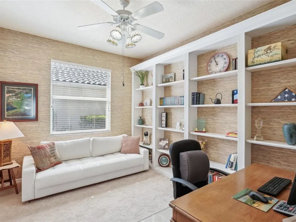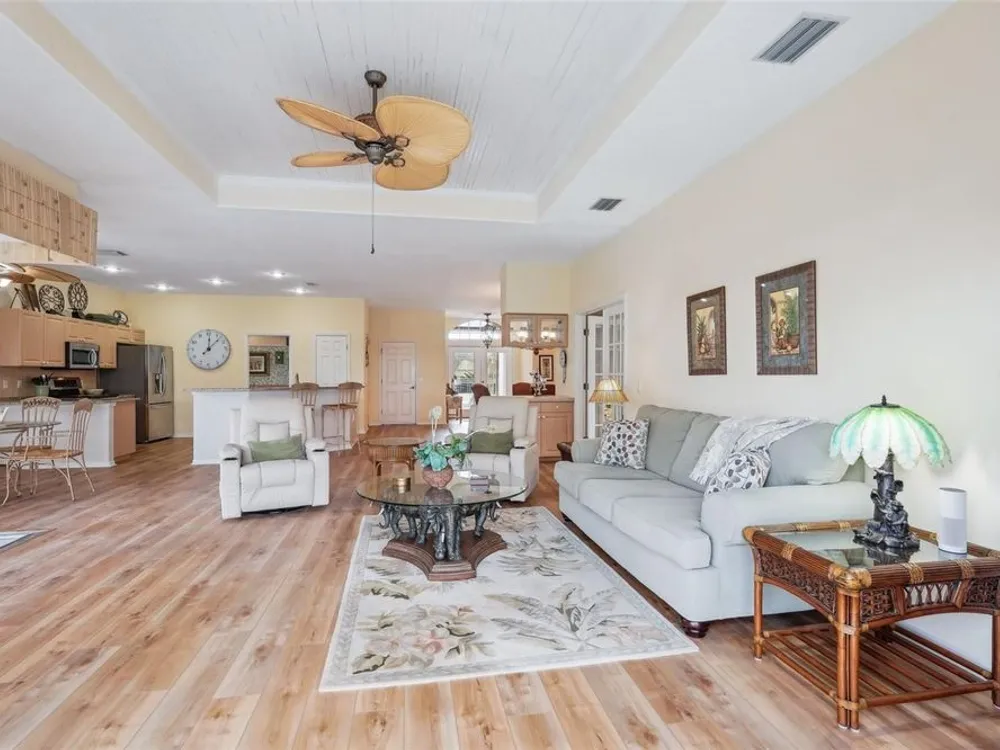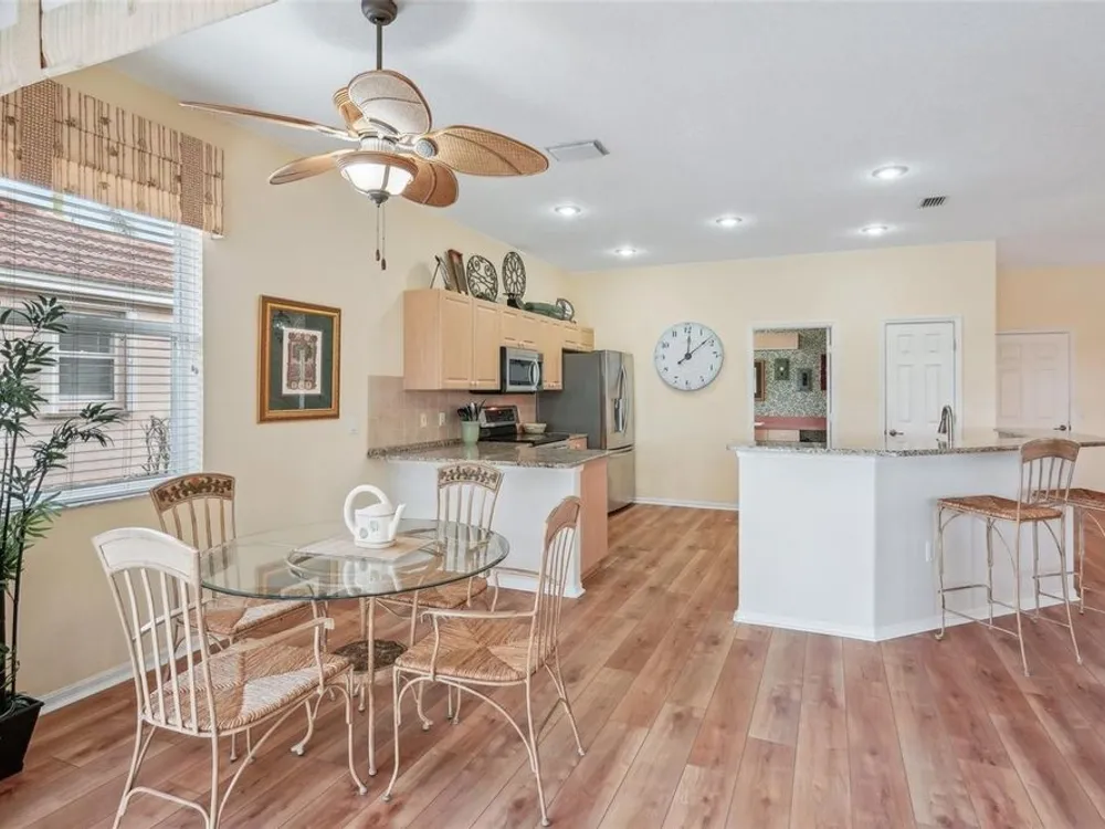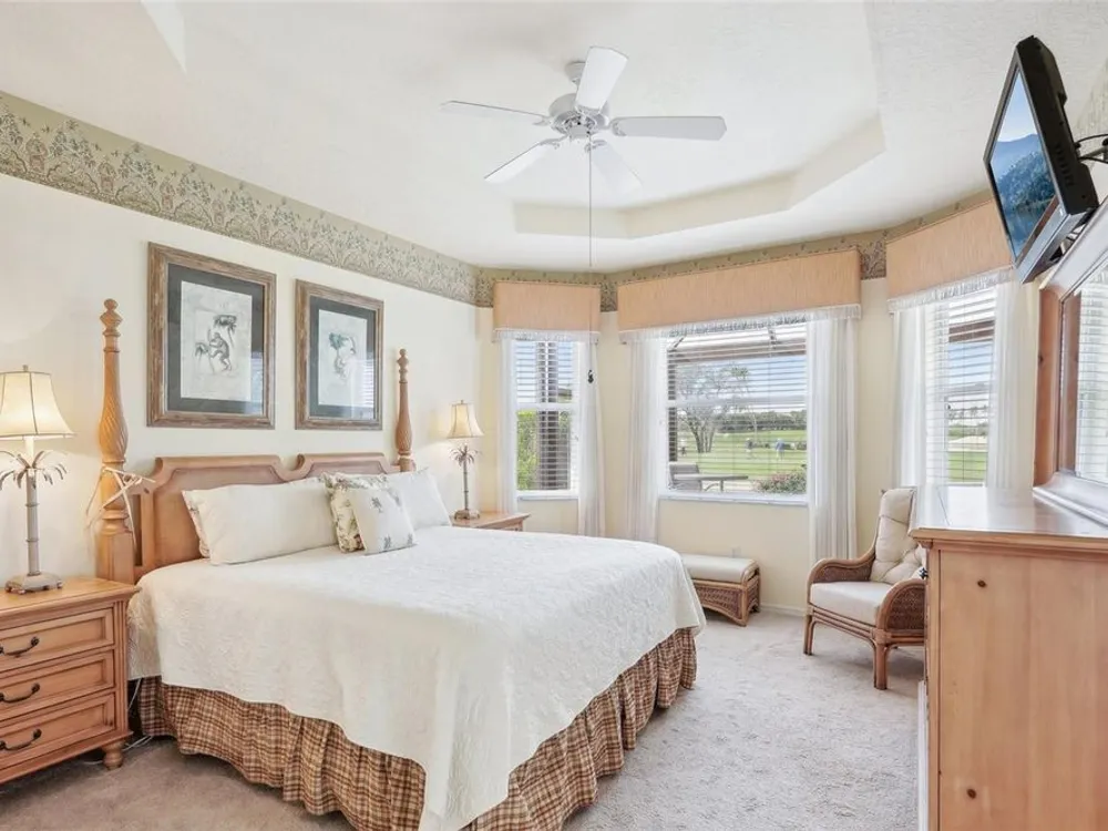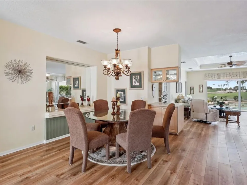 AMAZING PRICE IMPROVEMENT—NOW $449,500. 5105 Pine Shadow Lane is a stunning, turnkey Heron Creek home—fully furnished inside and out. This single-owner 3BR/2BA builder’s model (1,955 sf) blends comfort and easy elegance with an open, functional layout ideal for everyday living and entertaining. Luxury vinyl plank floors anchor the main living areas in warm, neutral tones. The great room flows to a defined dining area, breakfast nook, and a well-appointed kitchen with abundant cabinetry, generous counters, and storage. Bedroom 3 offers flexible use as a den/office/guest room. Major updates deliver peace of mind: 2023 roof & lanai cage, 2023 HVAC & water heater, upgraded pool pump, plus a Generac whole-house generator (2020; transferable 5-yr warranty). “Disappearing” sliders open to an oversized wrap-around lanai with a waterfall-edge gunite pool and picture-perfect golf-course views—true indoor/outdoor Florida living. Home sits in non-flood Zone X within a gated community and has no CDD. Oversized 2-car garage includes a GOLF CART. A 15’ flagpole is installed on site. Monthly HOA includes high-speed fiber-optic internet & full TV via Hotwire Vision, lawn/landscape, and irrigation. Heron Creek Golf & Country Club features 27 holes of championship golf, Har-Tru tennis, fitness center, resort-style pool, and a beautiful clubhouse with pro shop, card room, grill room, and restaurant. Club membership is required; three tiers are offered beginning around $268/mo (buyer to verify). A $10,000 Platinum Legacy golf membership may be available for transfer (confirm with club). Easy access to I-75, beaches, Wellen Park, Braves Stadium, Venice, and downtown Sarasota. Turnkey, beautifully maintained, and seriously priced to sell—schedule your showing today.