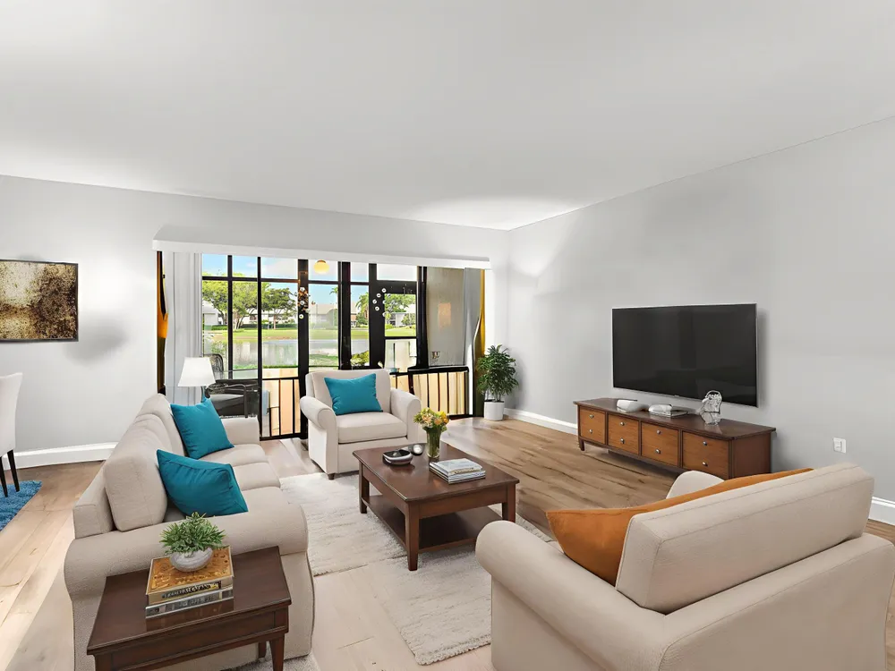 Panoramic Lake Views Await! Enjoy stunning lakefront living in this well-maintained end unit with breathtaking views of the lake, fountain, and golf course. This 2BR/2BA + den residence features a bright, open layout, spacious eat-in kitchen with newer appliances, and tranquil water views from nearly every room--including the screened porch. Nestled in a prestigious gated community with an 18-hole executive golf course, 5 Har-Tru tennis courts, 2 resort-style pools, and a newly renovated clubhouse with cafe, fitness, card room, library, entertainment & year-round activities--all without high equity fees. Manned gate for peace of mind, minutes to beaches, dining & shopping.