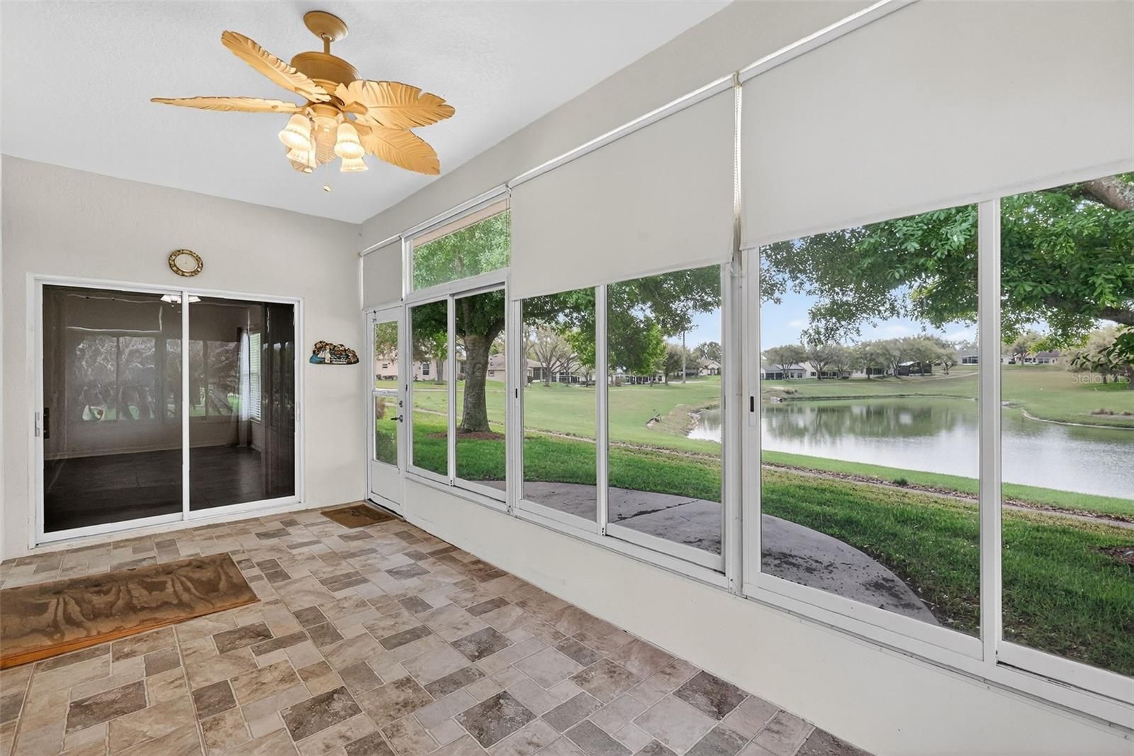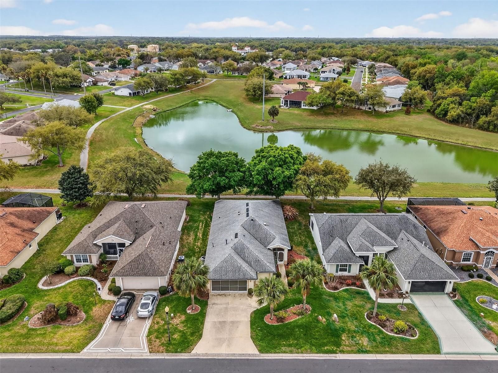 Lovely expanded Balmoral model with peaceful pond views and 2+ golf cart garage...2020 roof, 2018 HVAC system, 2010 water heater. Solid surface flooring and high ceilings throughout living areas. Screened in front porch. The bright and light great room is open to the kitchen and has sliding doors leading to an enclosed lanai which has pocketing sliders and an additional patio. Eat in kitchen with built-in desk and closet pantry is adjacent to the laundry room and garage access. The spacious master bedroom includes a generous walk-in closet and also has sliders to the lanai. Master bath has a dual sink vanity with a make-up counter, a linen closet and walk-in shower. Guest area has 2 bedrooms and a guest bath with a tub/shower combo, or use one of the bedrooms as an office. Legacy is a nature themed Pringle community with miles of walking paths for your enjoyment * lots of beautiful birds including Sandhill cranes and eagles * cards, bocce, billiards, tennis, pickleball, crafts, aerobics, bicycling, softball, travel, library and more! Enjoy the beautiful resort style pool with walk-in entry * closer to the turnpike, about 45 minutes to the airport and Orlando attractions * shopping is just around the corner, plus a full-service Orlando Health South Lake Hospital emergency center * HOA includes cable & internet, lawn mowing and edging and RV/boat storage! Plan your visit today!