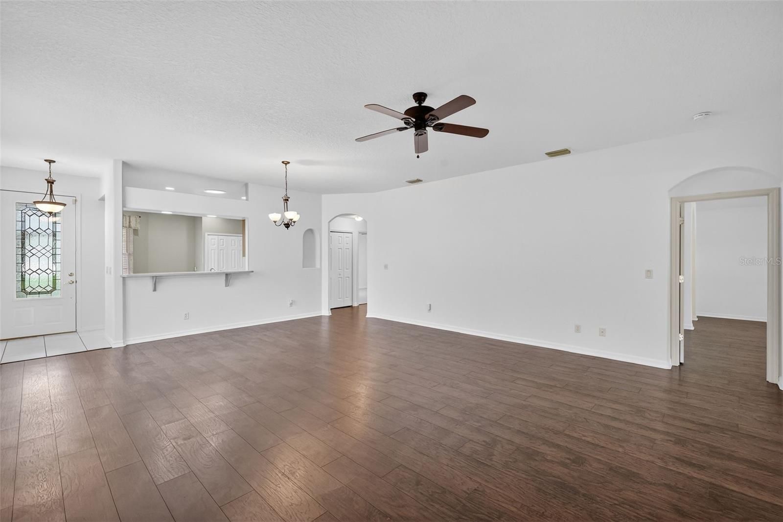 - Ceiling Fan(s), Eat-in Kitchen, High Ceilings, Living/Dining Room, Open Floorplan, Solid Surface Counters, Solid-Wood Cabinets, Vaulted Ceiling(s), Walk-In Closet(s)