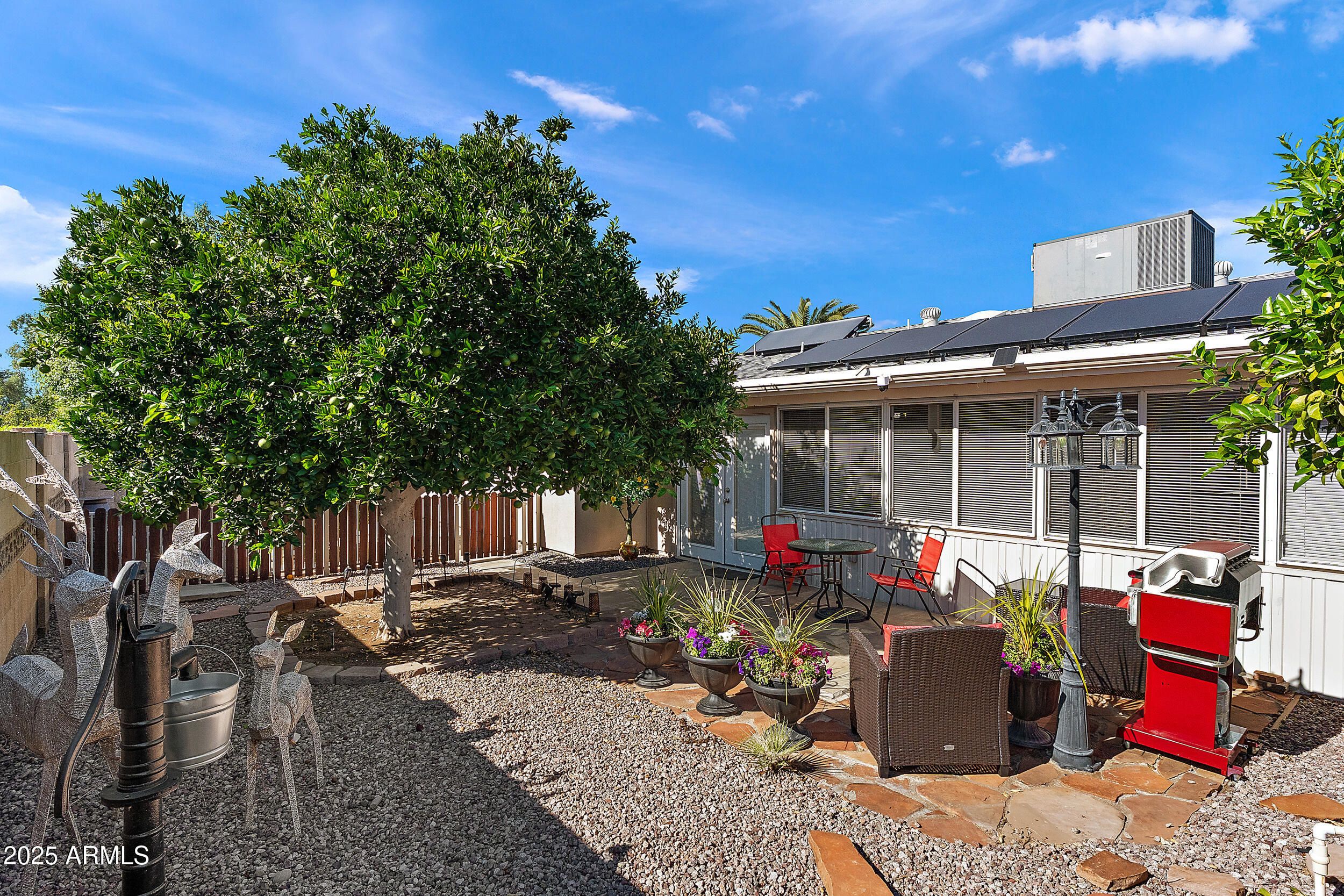 ! THIS IS THE ONE ! Updated/Upgraded Home *** 55+ Community of Sunland Village(low annual HOA fees)** OWNED SOLAR** Low Electric Bills / Expanded 500 Floor Plan With Large Family Room/Den *** Main Features Include: South Facing Back yard / Natural Slump Brick Constructed Home / Upgraded Shingles / Aluminum Soffit / Facia(minimal exterior maintenance)/ Rain Gutters / Fenced Yard / 3 Fruit Trees(2 orange/ 1 lemon)** Expanded Front Patio / Extended Length Garage(20'x25') ** Whole House H2O Water Purification System ** Thomasville Kitchen Cabinets(w/self closing and rollout drawers) / Stainless Steel Appliances / Kitchen Skylight / Extra Large Laundry(lots of Cabinets) / New Luxury Vinyl Flooring(4'' baseboards) / Bay Windows(mb Bedroom/dining) ** Come See this Upgraded Home!