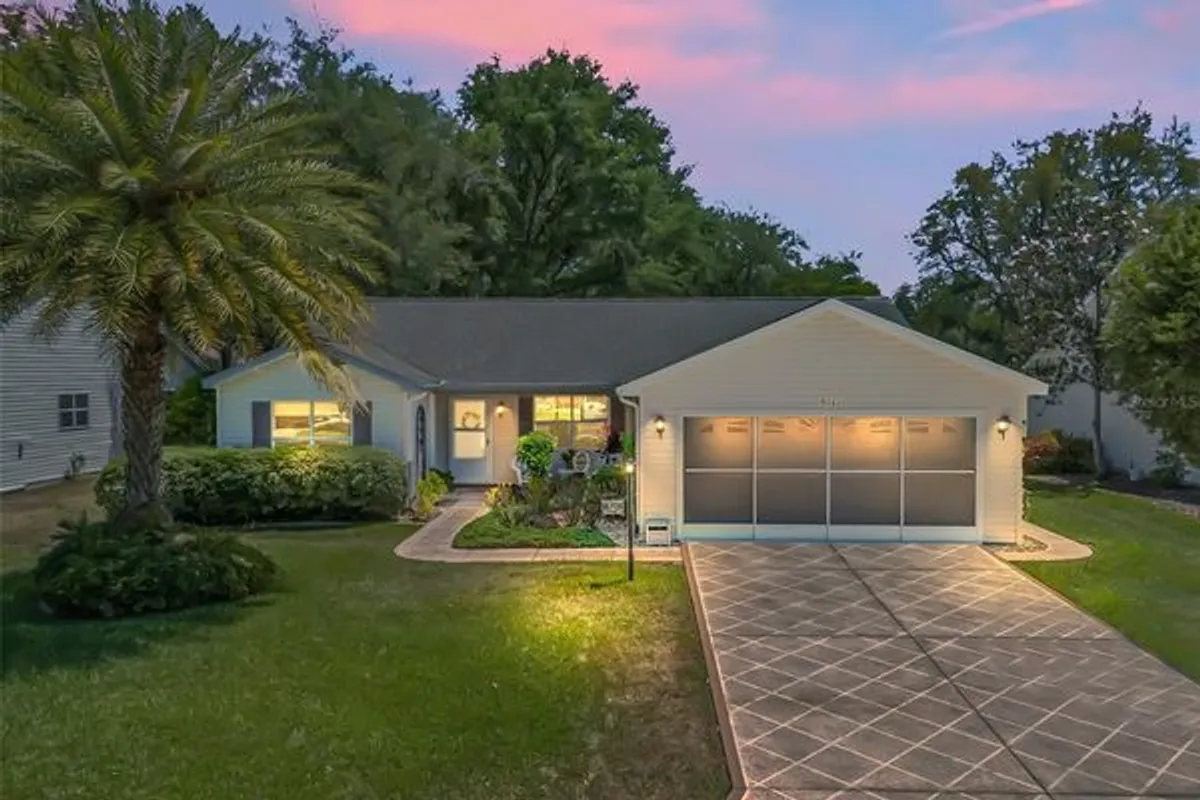 Back on the Market - Appealing & Move-in Ready Golf Front Designer Home in the highly sought-after Village of Mira Mesa. This property is located in the area known as 'The Entertainment Center' of The Villages and offers scenic views of the Golf Course, surrounded by mature trees and professional landscaping. This light-filled, well-maintained property features an open-concept layout with vaulted ceilings, solar shades, ceilings fans and laminate floors throughout which combine to create a bright and comfortable living space. The cozy living and dining areas seamlessly blend together showcasing tranquil views of the greenbelt. The well-designed kitchen includes granite countertops, a double sink, solid wood birch cabinetry and a window overlooking the lush gardens—offering both practicality and charm. The Primary Bedroom is privately positioned away from the guest rooms and features vaulted ceilings, a walk-in closet and peaceful views. The en-suite bath includes dual vanities, quartz counter stops, a step-in glass shower, a linen closet and vaulted ceilings. Two spacious guest bedrooms, with built-in closets, are accessed via a private hallway and share a full bath with a shower/tub combo. The bathrooms, kitchen & laundry room show luxury vinyl flooring. Enjoy the picturesque Florida Room with solar shades and serene views, perfect for relaxing year-round. Step out to the screened lanai and separate patio area, an ideal space for entertaining, BBQs, or simply enjoying the Florida weather with friends and family. The front patio offers an additional outdoor seating area, while the wraparound path leads to a very attractive landscaped backyard featuring an assortment of fruit trees and shaded spaces provided by mature trees. Additional highlights include a separate laundry room, a clean and well-organized two-car garage with built-in cabinetry, a workbench, attic access, painted patterned concrete floor and a side door for added convenience. The extended driveway comfortably accommodates up to four cars. A new roof & HVAC system were both installed in 2023, NO BOND. Offered fully furnished, including a golf cart and bicycles, this home is turnkey and ready to enjoy. This home offers both lifestyle and financial appeal. The Village of Mira Mesa is ideally located just minutes from Spanish Springs Town Square, offering access to executive golf courses, the Chula Vista Club with newly renovated Pool and recreational amenities plus the nearby popular Rio Grande Family Pool and just minutes to The Sharon Theatre, The Savannah Center, Studio Theatre and Sumpter Landing. Medical facilities, restaurants, shops, theatres and entertainment options are all within easy reach, making this property a desirable and convenient choice for residents.