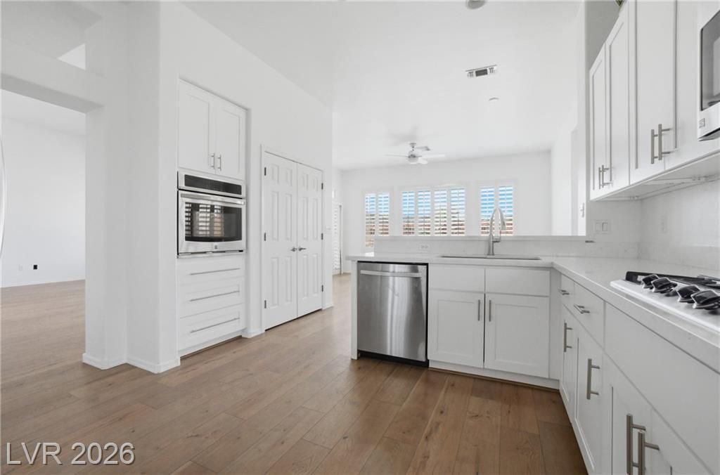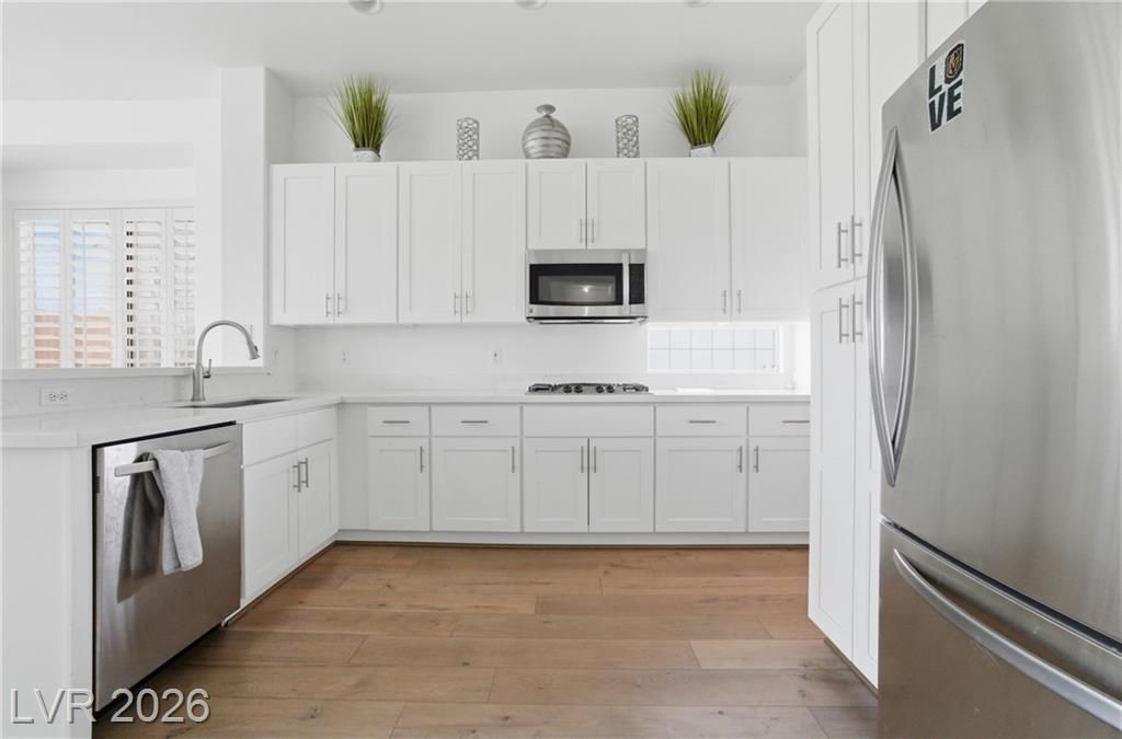 BEAUTIFULLY RENOVATED 3 BEDROOM, 2 BATH HOME LOCATED IN THE DESIRABLE SUN CITY MACDONALD RANCH 55+ COMMUNITY IN GREEN VALLEY. THIS MOVE-IN READY HOME FEATURES FRESH TWO-TONE PAINT, LUXURY VINYL PLANK FLOORING THROUGHOUT, AND UPGRADED LIGHTING AND FIXTURES. THE SPACIOUS KITCHEN OFFERS NEW WHITE SHAKER CABINETS, STAINLESS STEEL APPLIANCES, AND STONE COUNTERTOPS WITH AN OPEN LAYOUT PERFECT FOR ENTERTAINING. THE OVERSIZED PRIMARY SUITE INCLUDES DOUBLE SINKS, A SEPARATE TUB AND SHOWER, AND A LARGE WALK-IN CLOSET. SECONDARY BEDROOMS ARE GENEROUSLY SIZED. ENJOY A LARGE BACKYARD ON AN OVERSIZED GOLF COURSE LOT WITH STUNNING VIEWS. CONVENIENTLY LOCATED NEAR SHOPPING, DINING, GREEN VALLEY RANCH RESORT & CASINO, AND EASY FREEWAY ACCESS.
