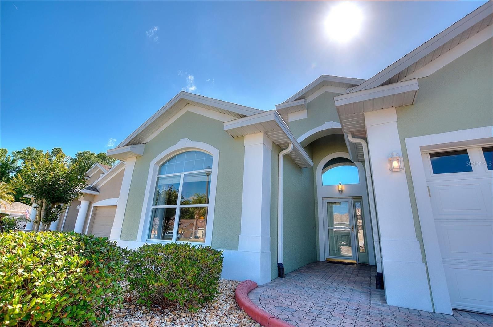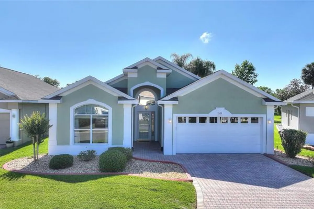 High Vista's Favorite Model in Remarkable Condition by Original Owner - RidgeDale 3 Bedroom / 2 Bath with enclosed East-Facing Lanai, Whole House Water Filtration system and Epoxy Garage Floor, located 0.3 miles from High Vista private clubhouse and amenities center. Expanded brick paver driveway and walkway to an under-roof front entry with domed overhead transom window, full-view storm door with integrated screen and custom leaded-glass sidelight insert handmade by a High Vista artisan. 12 FT ceiling in central Great Room with a wall of patio doors to lanai with floor-to-ceiling acrylic windows. LVP flooring in Eat-In Kitchen and corridor Laundry room with installed cabinets over the Maytag washer & dryer plus a utility sink and storage closet. All bedrooms on north side of house with primary en suite bedroom in the back. Pull-down ladder in garage to access attic with partial flooring for storage. Custom cement shrub bed curbing with landscape stones. Exterior paint 2023; HVAC 2022; 2016 Roof was inspected 4/13/2026; Reverse Osmosis unit on kitchen sink. Select furnishings available for sale separately. Sold As-Is. Ridgewood Lakes is a golf cart friendly community. $230 monthly High Vista HOA fee includes Spectrum internet and basic cable TV with 2 cable boxes, lawn mowing and exclusive access to resident-owned 12,000 SF private High Vista clubhouse and amenities. $425 semi-annual Ridgewood Lakes HOA fee provides 24x7 staffed security gate and master association-owned private road maintenance. Adjacent to 18-hole White Heron Golf Club with The Nest restaurant, privately owned and open to the public. High Vista is a 55+ community with outdoor heated pool and spa, fitness center, library, pub & many organized activities. Pickle ball, tennis, bocce and shuffleboard courts. Miles of biking and walking trails within Ridgewood Lakes gated community. Shopping, Disney, Universal, Orlando & Central FL entertainment nearby, easy access to I-4, medical facilities, airports & Sunrail Station. Advent Health hospital is 3 miles away.