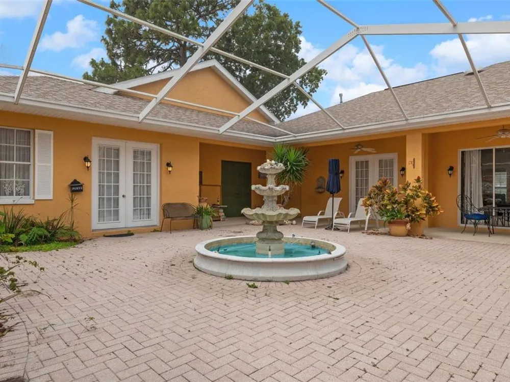 MOTIVATED SELLERS!! BRING US AN OFFER!! Stunning Custom-Built Palmwood Courtyard Home Nestled In The Prestigious Gated, Golf-Course Community Of Silverthorn! This Immaculate 4-Bedroom, 3-Bathroom Residence With An Oversized 2-Car Garage Boasts A Brand-New Roof Installed In 2024 And Exemplifies Quality Craftsmanship Throughout. Fully Furnished And Move-In Ready, Just As Shown In The Photos-Owners Are Relocating To Be Closer To Family. Step Through Grand Double Doors Into Your Own Private Pavered Courtyard Retreat, Featuring A Fountain And Hand-Painted Custom Mural. Inside The Main Residence, You'll Find An Open-Concept Living Area With A Gas Fireplace And A Beautifully Appointed Kitchen Showcasing All-Wood Cabinetry, Corian Countertops, A Separate Cooktop And Wall Oven, Breakfast Bar, And A Picturesque Courtyard View From The Sink. The Split Bedroom Layout Offers A Serene Master Suite With Dual Walk-In Closets, Double Vanities, A Spacious Walk-In Shower, Relaxing Soaking Tub, And Private Water Closet. The Opposite Wing Includes A Comfortable Guest Bedroom, Full Guest Bath, And Laundry Room, While The Third Bedroom Is Currently Configured As A Home Office With A Custom Built-In Desk. Across The Courtyard Lies A Detached One-Bedroom, One-Bathroom Guest Suite Featuring Its Own Safe Room—Perfect For Visiting Family, An In-Law Retreat, Or A Private Studio. Additional Features Include An Electric Vehicle Charging Plug In The Garage, Plantation Shutters, A Dedicated Irrigation Well With Full Yard Sprinkler System, And Thoughtfully Designed Built-In Storage And Extra Closets Throughout. Silverthorn Offers An Exceptional Lifestyle With Top-Rated Public Schools Nearby And A Wealth Of Amenities, Including A Community Pool, Fitness Center, Tennis And Pickleball Courts, Basketball Court, Playground, Scenic Walking And Jogging Trails, And An Award-Winning Joe Lee-Designed Golf Course. Residents Also Enjoy A Full-Service Country Club With Restaurant And Bar, And HOA Fees That Include Cable And High-Speed Internet. This Is Florida Living At Its Finest!