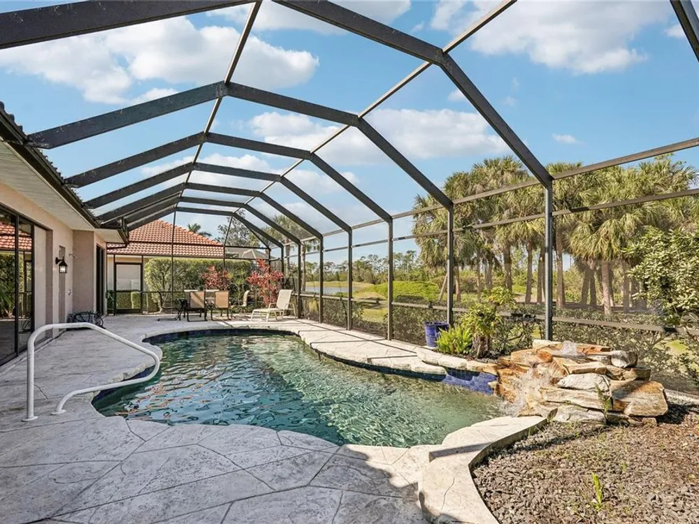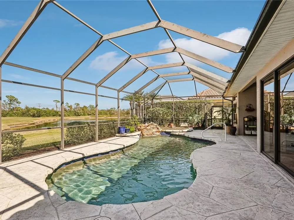 SIGNIFICANT PRICE ADJUSTMENT! A Rare Opportunity in Heron Creek Golf & Country Club. Welcome to a home filled with light, love, and limitless potential. Set along the serene 6th hole of the Marsh course, this residence has been the backdrop for cherished memories — and now, she’s ready for its next chapter. Step inside to discover soaring cathedral ceilings with skylights, an expansive great room bathed in natural light, and a layout designed for both lively gatherings and quiet moments. The heart of the home is the inviting kitchen with its L-shaped island, perfect for everything from morning coffee to evening cocktails. The generous primary suite is a true retreat, stretching the full length of the home, complete with a cozy sitting area, two walk-in closets, and a sunlit bathtub with a walk-in shower. Guests will enjoy their own private wing, including poolside access that makes every visit feel like a getaway. Outside, your screened lanai, private pool, and tranquil waterfall offers a front-row seat to Florida’s natural beauty — mature trees, manicured fairways, and peaceful greens. A brand-new roof, oversized garage, and dedicated golf cart garage provide comfort and convenience for years to come. Located in the vibrant, gated Heron Creek community, residents enjoy 27 holes of championship golf, tennis, a resort-style pool and spa, fitness center, clubhouse and an array of social events. With low HOA fees covering high-speed fiber-optic internet and full TV service provided by Hotwire Vision, lawn care, irrigation (and no CDD fees), you can focus on what truly matters: living the lifestyle you’ve dreamed of. This is more than a house — it’s a rare opportunity to create your own story in one of the most desirable neighborhoods on the in North Port. Don’t miss your chance. Schedule your private tour today — or explore the virtual tour from wherever you are.