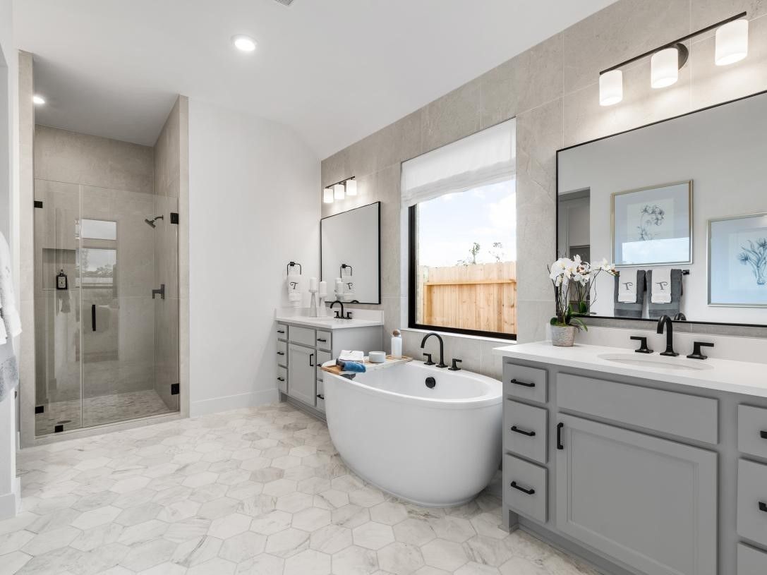 - Double Vanity, High Ceilings, Kitchen Island, Soaking Tub, Separate Shower, Walk-In Pantry, Wired for Sound, Ceiling Fan(s), Kitchen/Dining Combo