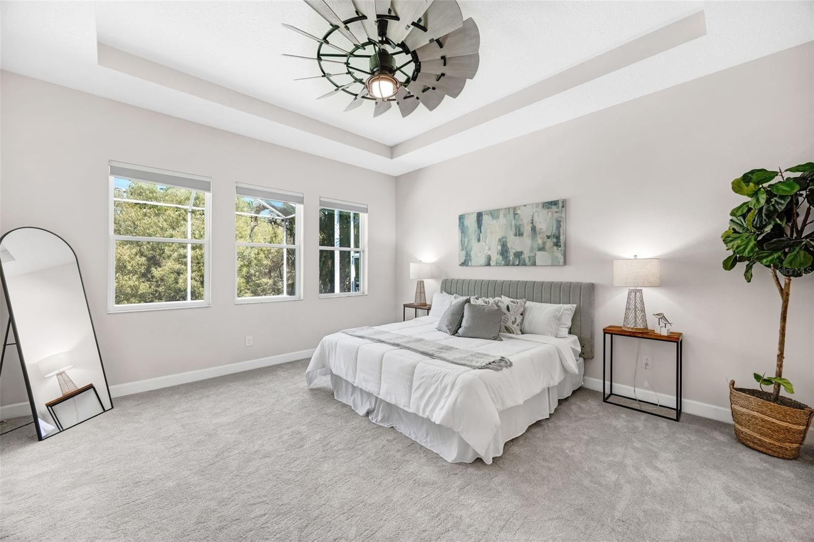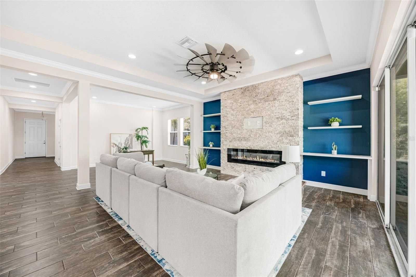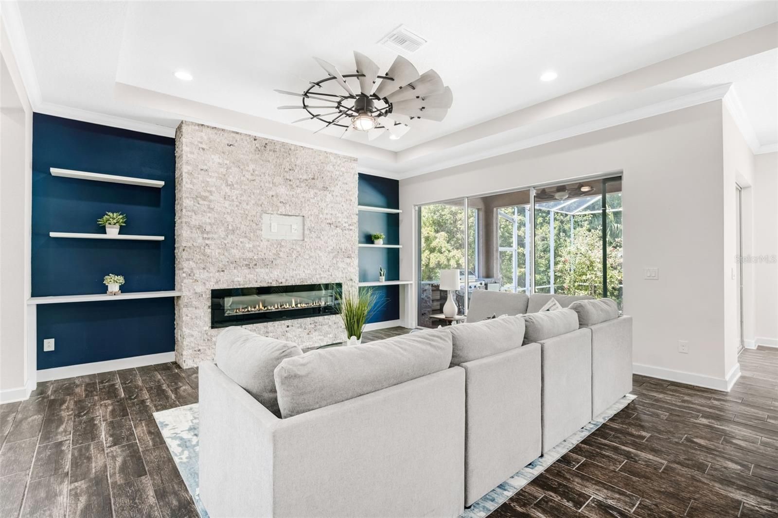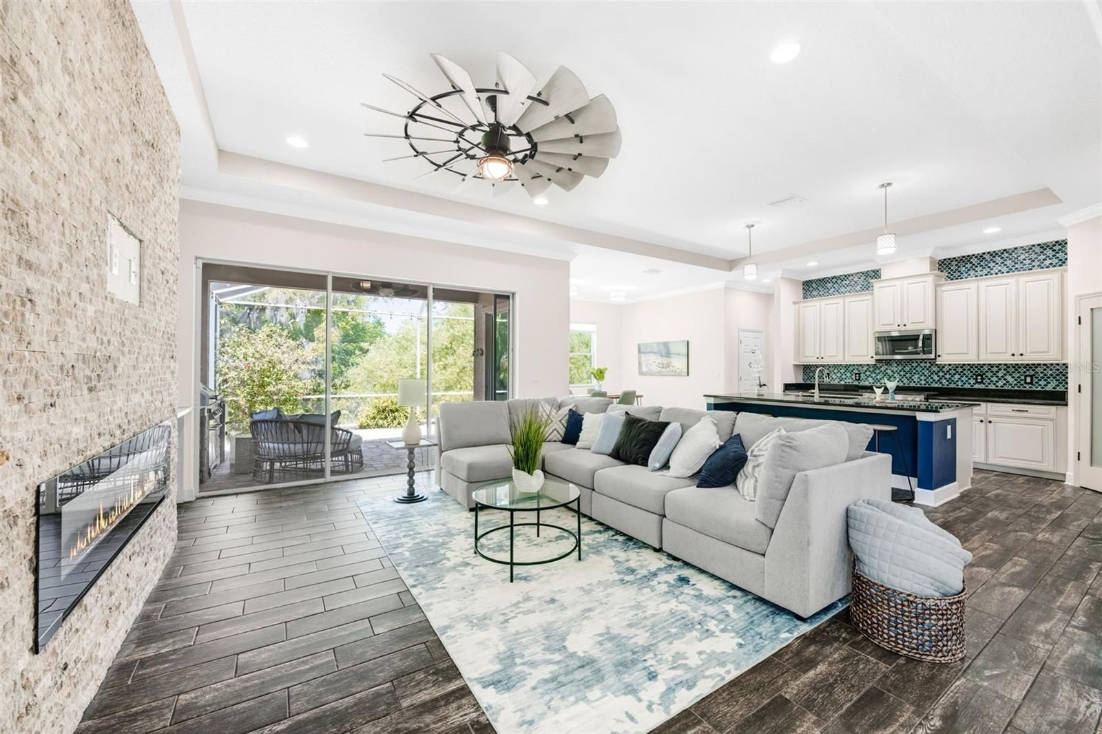 *****Take advantage of the sellers assumable loan at a 2.75% Interest Rate and make this purchase your dream come true! Refined coastal living in this custom 4-bedroom, 3-bath pool home perfectly positioned on a private conservation lot in the gated community of Admiral Pointe at MiraBay. Every detail has been thoughtfully designed, from the custom designed closet organizers in EVERY BEDROOM to the stone fireplace anchoring the open great room to the wood-look tile floors flowing through all main living areas. The triple-split floor plan offers both space and privacy bedrooms 3 and 4 share a convenient Jack-and-Jill bath, while the secondary suite features its own full ensuite bath for privacy, ideal for guests or multi-generational living. The designer paint accents, granite countertops, and custom backsplash create a modern, welcoming atmosphere. Enjoy the best of Florida living outdoors with a heated saltwater pool w/spa feature, screened lanai, and outdoor kitchen with gas grill, all overlooking tranquil preserve views with no rear neighbors. The spacious pie-shaped lot provides added room and privacy, and the 3-car garage offers plenty of storage. Residents of Admiral Pointe enjoy access to all of MiraBay’s resort-style amenities — clubhouse, fitness center, café, marina, community pool, tennis, pickleball, and scenic walking trails. Conveniently located near I-75, with easy access to Tampa, St. Pete, and Sarasota. Come home to the perfect blend of luxury, comfort, and coastal charm.