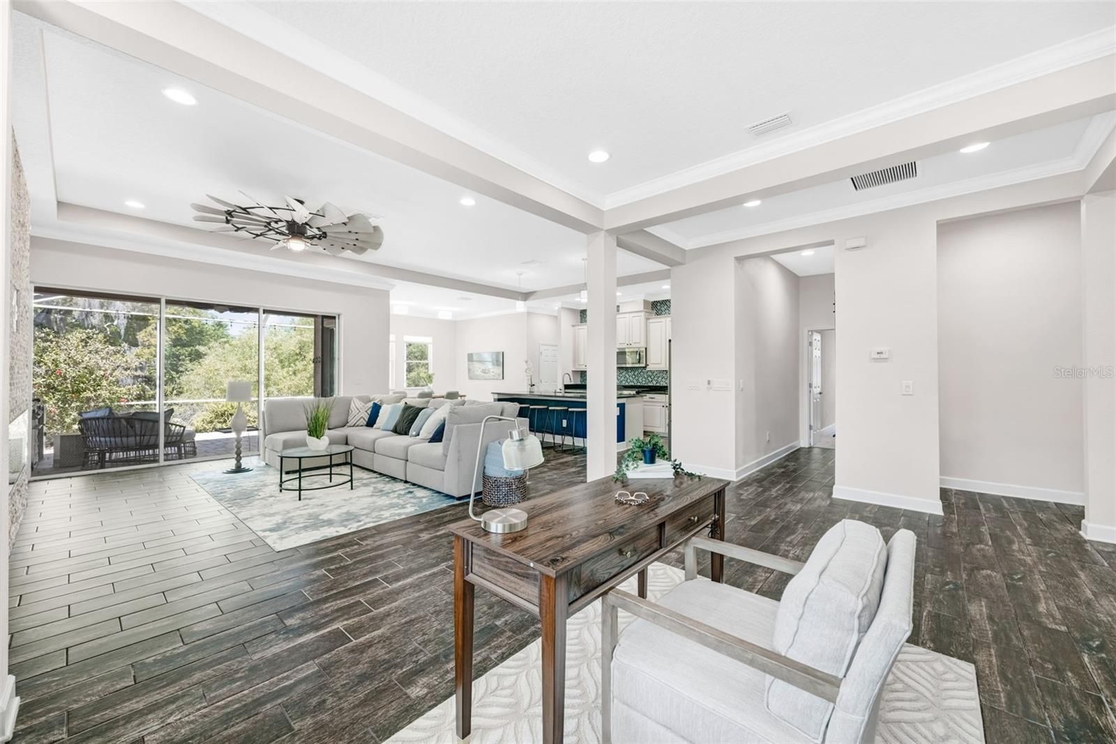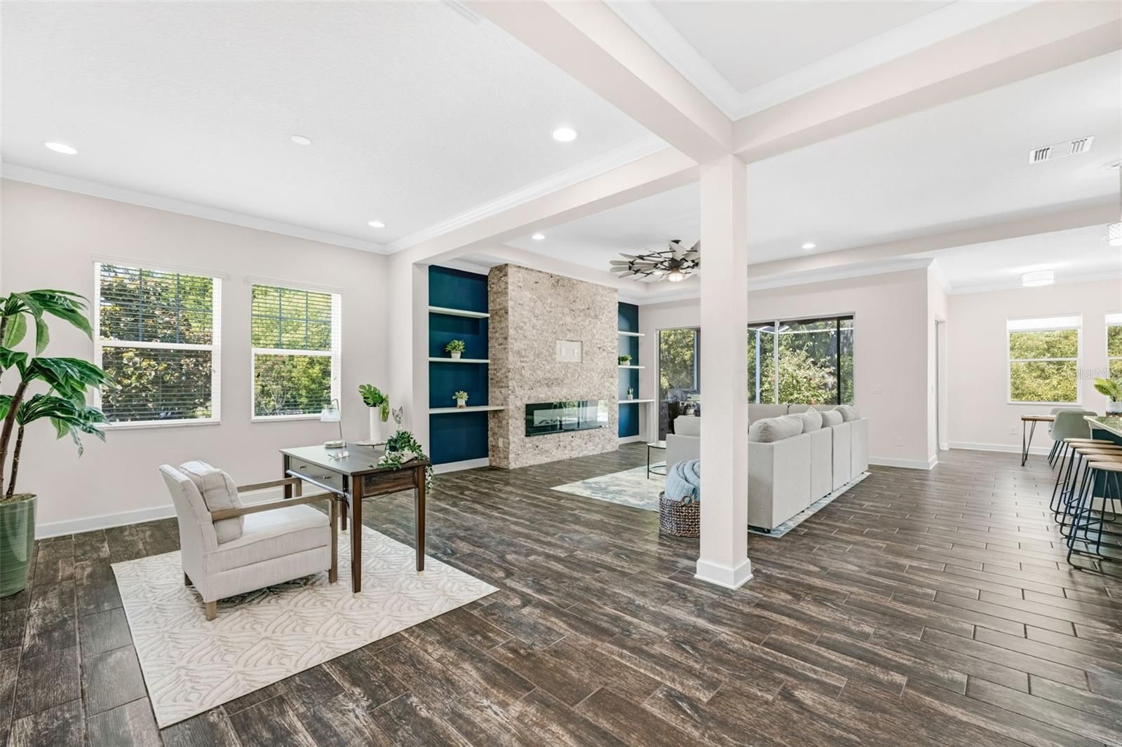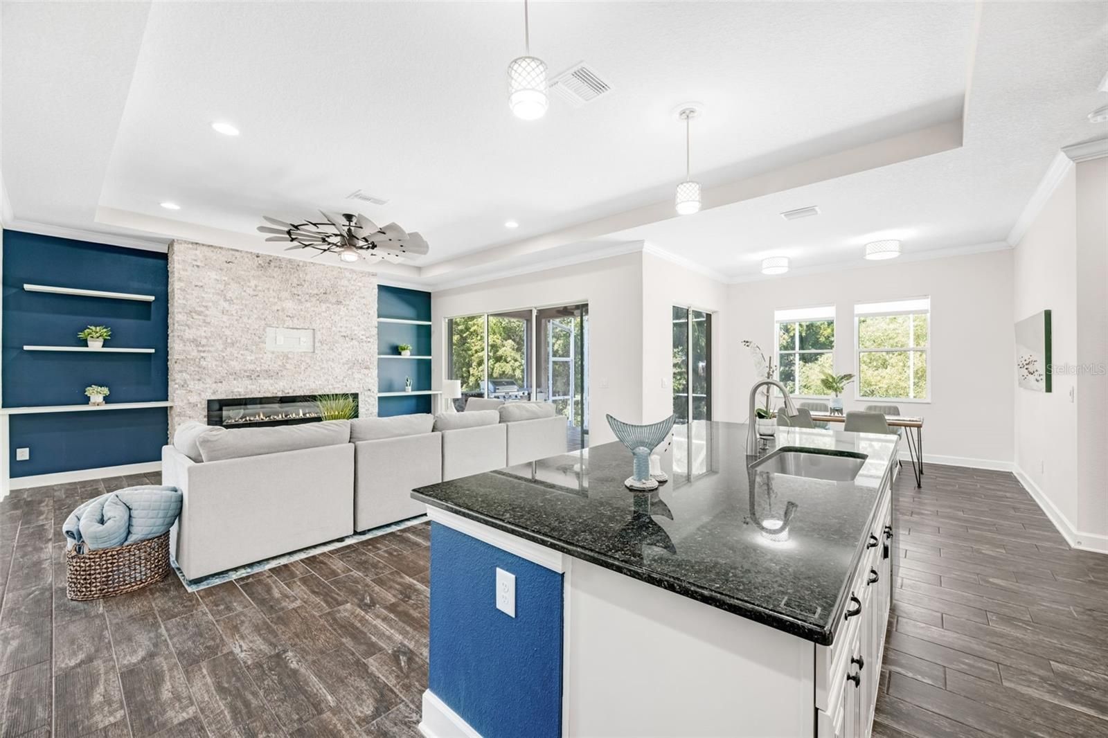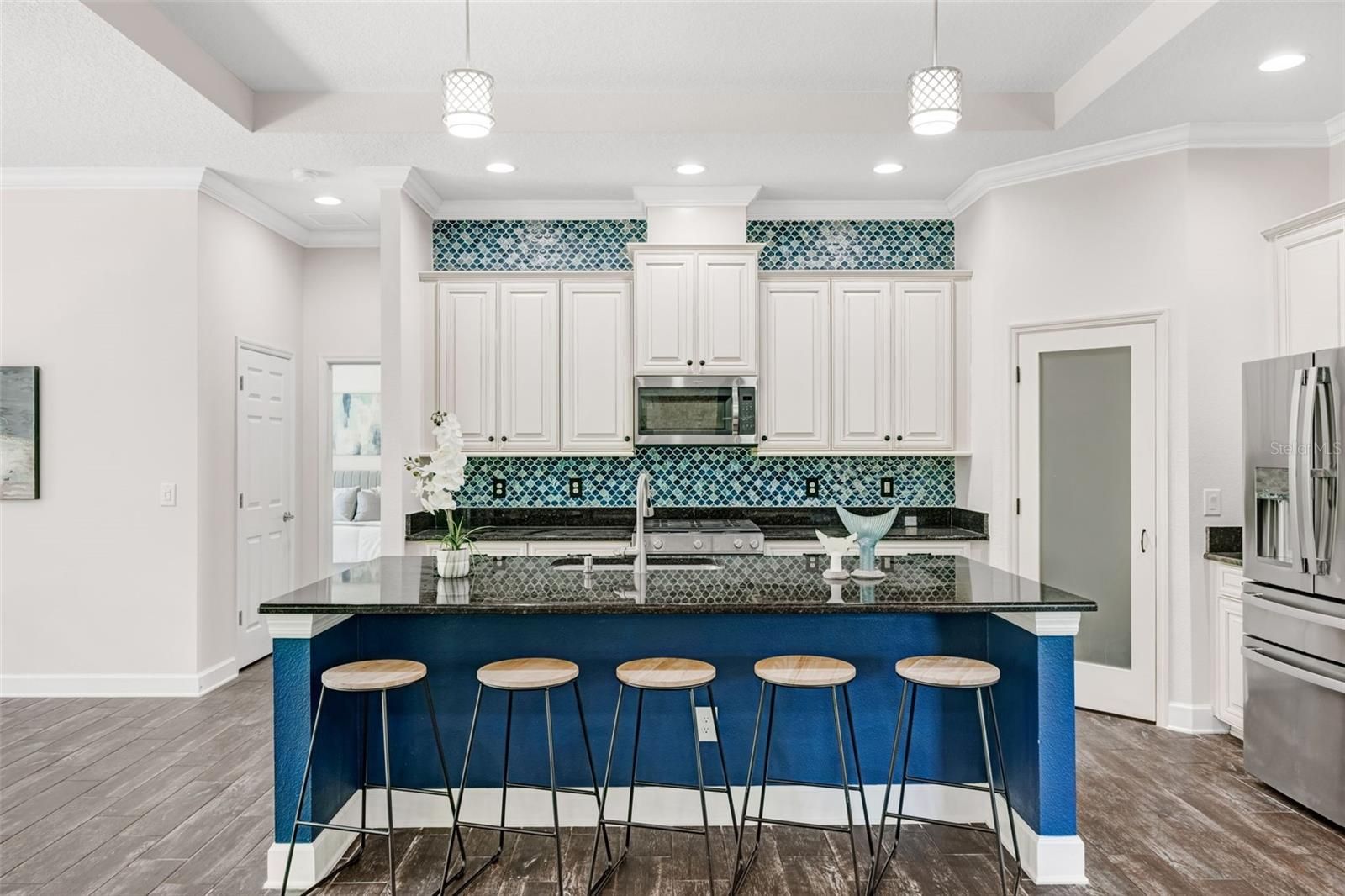 *****Take advantage of the sellers assumable loan at a 2.75% Interest Rate and make this purchase your dream come true! Refined coastal living in this custom 4-bedroom, 3-bath pool home perfectly positioned on a private conservation lot in the gated community of Admiral Pointe at MiraBay. Every detail has been thoughtfully designed, from the custom designed closet organizers in EVERY BEDROOM to the stone fireplace anchoring the open great room to the wood-look tile floors flowing through all main living areas. The triple-split floor plan offers both space and privacy bedrooms 3 and 4 share a convenient Jack-and-Jill bath, while the secondary suite features its own full ensuite bath for privacy, ideal for guests or multi-generational living. The designer paint accents, granite countertops, and custom backsplash create a modern, welcoming atmosphere. Enjoy the best of Florida living outdoors with a heated saltwater pool w/spa feature, screened lanai, and outdoor kitchen with gas grill, all overlooking tranquil preserve views with no rear neighbors. The spacious pie-shaped lot provides added room and privacy, and the 3-car garage offers plenty of storage. Residents of Admiral Pointe enjoy access to all of MiraBay’s resort-style amenities — clubhouse, fitness center, café, marina, community pool, tennis, pickleball, and scenic walking trails. Conveniently located near I-75, with easy access to Tampa, St. Pete, and Sarasota. Come home to the perfect blend of luxury, comfort, and coastal charm.