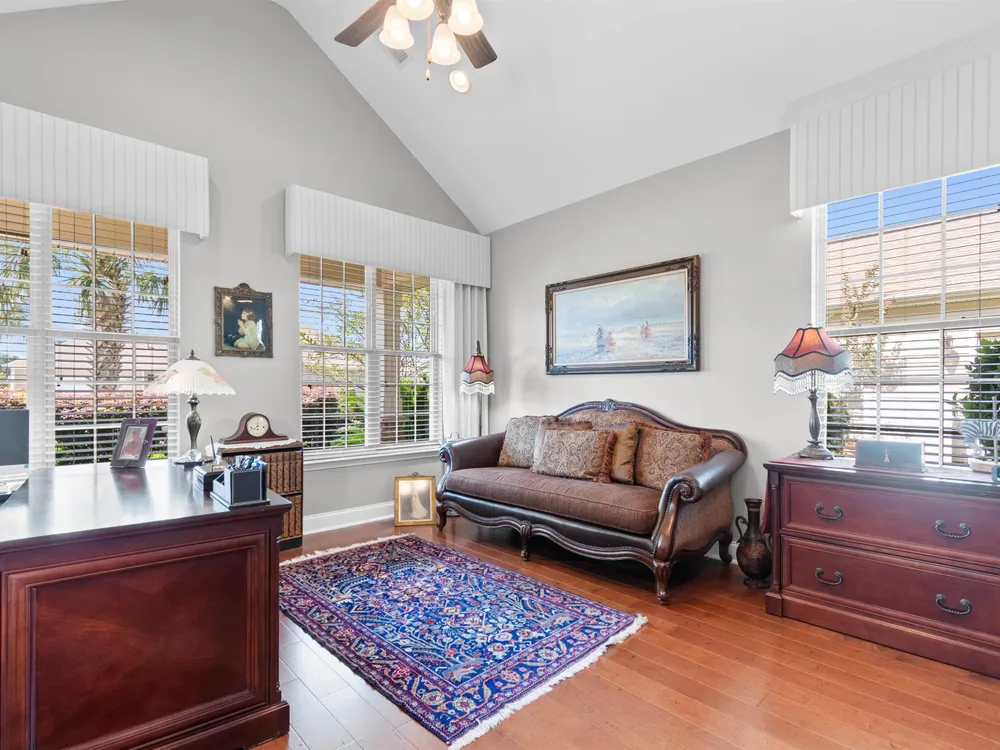 One of the most exceptional homes in Carillon at Tuscany, a premier 55+ gated community in Myrtle Beach known for its resort-style amenities. Thoughtfully upgraded and meticulously maintained, this residence combines timeless elegance with modern convenience, standing out as one of the finest in the neighborhood. From the moment you arrive, the home’s curb appeal sets the tone: beautifully manicured landscaping, stacked stone accents, dusk-to-dawn lighting, and a tiled front porch create a warm, inviting entry. Elegant Living, Inside and Out! Step inside to discover a layout that’s both functional and sophisticated. The formal living room features a vaulted ceiling, while the adjacent dining room boasts a tray ceiling and elegant chandelier—ideal for entertaining. Toward the rear of the home, the open-concept kitchen and family room provide a perfect gathering space for everyday living. The fully renovated gourmet kitchen (2018) is a true centerpiece, showcasing: White cabinetry with soft-close drawers; Quartz countertops; Samsung stainless steel appliances; Oversized farmhouse sink; Vented range hood; Custom tile backsplash; Under-cabinet lighting; and Expansive island with breakfast bar. No detail has been overlooked... The adjacent family room features a sleek electric fireplace and a custom-built entertainment center designed to fit a 65” TV—perfect for relaxing or hosting guests. The spacious primary suite offers comfort and luxury, with a tray ceiling, ceiling fan, and an oversized walk-in closet (11' x 6.5') outfitted with custom shelving. The fully renovated en suite bathroom features a Zero-entry tiled shower and Dual vanities with upgraded fixtures creating a Spa-like ambiance. A second bedroom and full bath are also located on the main level, ideal for guests or a home office. Flexible Second Floor Living... A 48” wide staircase with basket wrought iron railings leads to the upper level, where you'll find a spacious loft overlooking the main living area. On this same floor, there is also a Third bedroom with Berber carpet, a Full bathroom, and Two large attic storage areas. Outdoor Living & Premium Upgrades... Enjoy peaceful outdoor living on the screened porch with tiled floor, privacy roll-down screen, and ceiling fan. Step onto a custom stone patio surrounded by professional landscaping and a wooded buffer for added privacy. This home also includes: LeafGuard gutters; Custom French drains; Epoxy-coated garage floor; Whole-house generator; and Custom closets in every bedroom. Resort-Style Amenities at Your Doorstep... As a resident of Tuscany, you’ll enjoy access to a wide range of amenities: Two resort-style outdoor pools & lazy river; 2,000 sq. ft. fitness center; Expansive clubhouse with game room; Lighted tennis court, pickleball courts, & scenic nature trails; and 40 acres of lakes & 60 acres of preserved green space. Ideal Location... Conveniently located just minutes from: Tanger Outlets; Coastal Grand Mall; The Market Common; Top-rated golf courses; Coastal Carolina University; Medical facilities; Myrtle Beach International Airport; and the Beach. This home offers a rare blend of luxury, lifestyle, and location—truly an opportunity not to be missed. * Measurements and square footage are approximate. The buyer/buyer's agent is responsible for verifying ALL information in the MLS including lot size, HOA Information, square footage, etc.