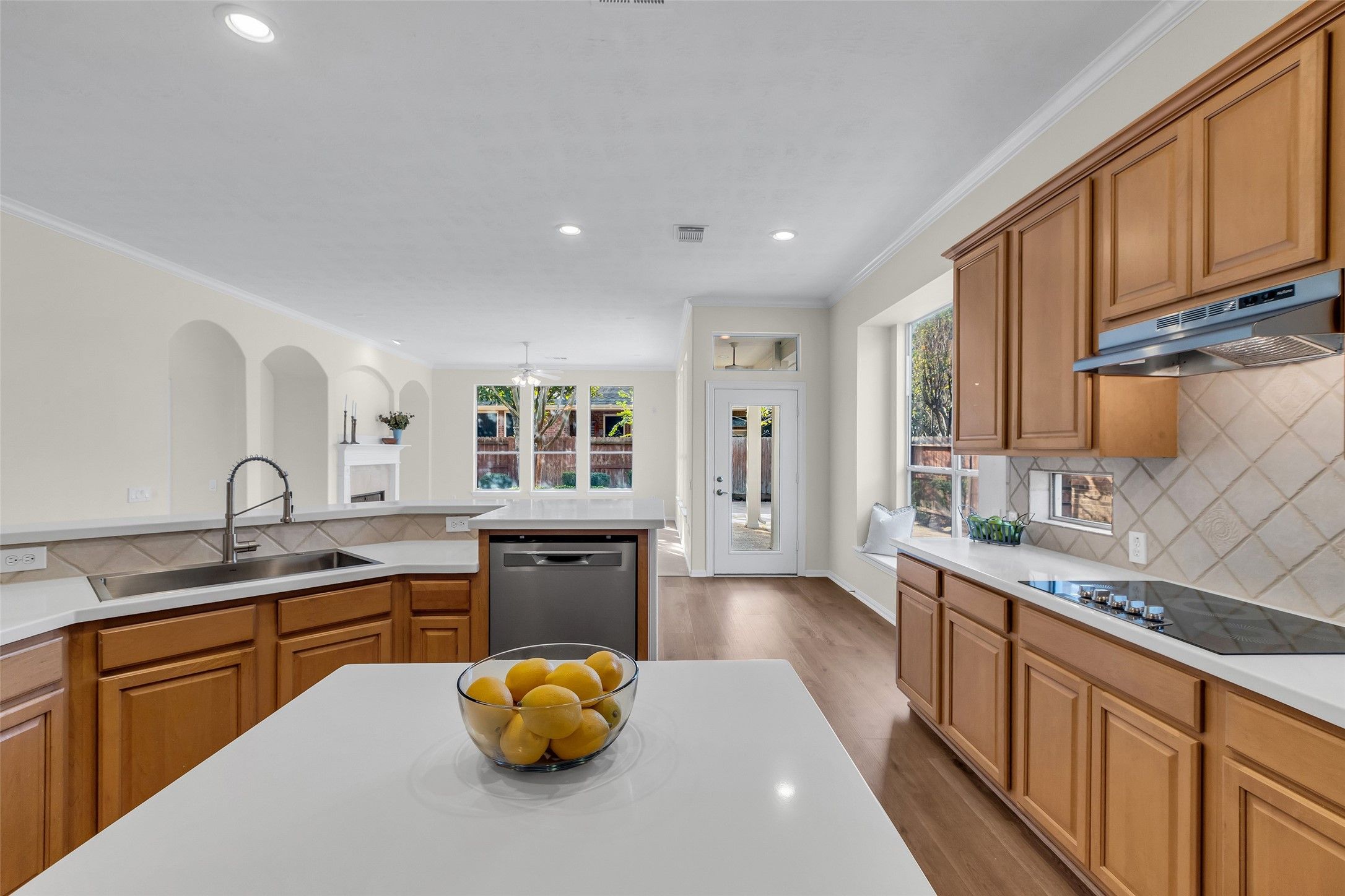 55+ active older adult community in Cinco Ranch. This open concept, move-in ready 3 bedroom, 2 bathroom home and 2 car garage is located in the heart of Cinco Ranch in HERITAGE GRAND at the end of a culdesac on a prime lot with green space on one side. November 2025 updates include:water heater, interior paint, hard flooring, carpet, kitchen appliances (dishwasher, electric cooktop, microwave, convection oven), sink, garbage disposal, professional landscape, garage shelves and toilets. Kitchen opens to the family with windows that overlook the professionally landscaped backyard. The generously sized primary suite provides double sinks, jetted tub and separate shower. Large office could be used as a fourth bedroom. Enjoy all this community has to offer with pickleball courts, heated pool, fitness center, clubhouse, ballroom and endless social events to enjoy!