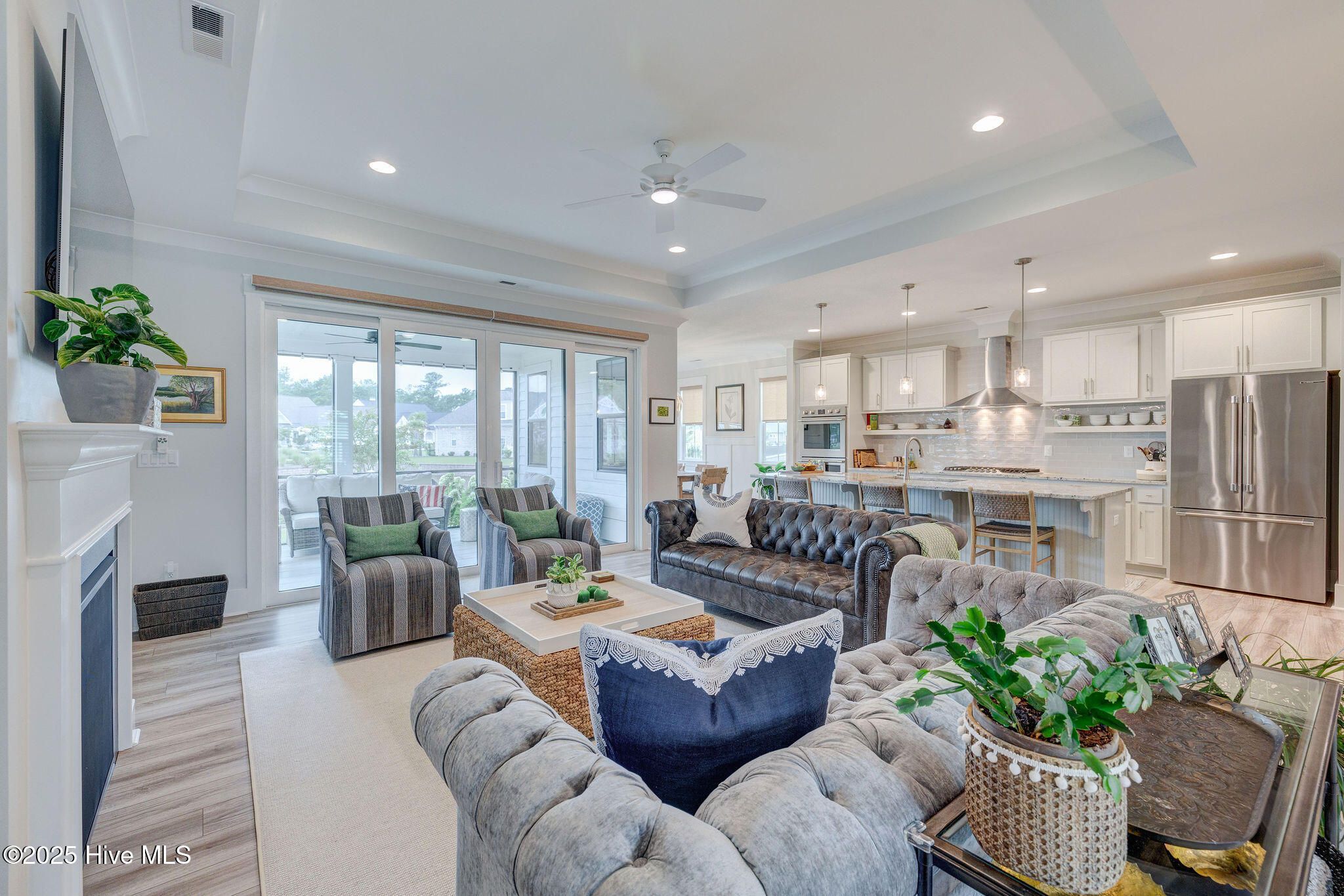 Back on the market-buyer terminated for personal reasons. Built in 2022 in the sought-after Cape Fear National section of Brunswick Forest, this home combines modern style with an unbeatable setting-perched on the pond with no home directly behind for added privacy. From the moment you step inside, the welcoming entry foyer sets the tone, offering a graceful introduction to the home's airy and elegant spaces. This split floor plan provides privacy for everyone. The spacious primary suite features a large walk-in closet, double vanities, and a beautifully tiled walk-in shower. Two additional bedrooms on the main floor are separated from the main living area by a double transomed pocket door for added guest privacy, and there's also a true dedicated office. Upstairs, the private bonus room includes an en-suite bath-ideal for guests or a second home office. The kitchen is a showstopper, boasting a 36-inch, five-burner natural gas cooktop, Miele dishwasher, Bosch refrigerator, double ovens, a large island, and a stylish coffee bar/beverage center off the mudroom with its own beverage refrigerator-perfect for effortless entertaining. The kitchen flows into a bright and airy dining room framed by seven windows. A large walk-in pantry and a dedicated laundry room with a freezer, plus a full-size stackable LG washer and dryer, add everyday convenience. The living room impresses with tray ceilings, a cozy fireplace, and built-in cabinetry, creating a warm and inviting space. Step outside to your personal paradise: a screened porch overlooking the peaceful pond and a beautifully landscaped backyard with hydrangeas, a fig tree, crepe myrtles, yucca, and pineapple guava. A built-in gas line for your grill makes year-round outdoor entertaining a breeze. Additional highlights include a two-car garage and a walk-in floored attic for ample storage.