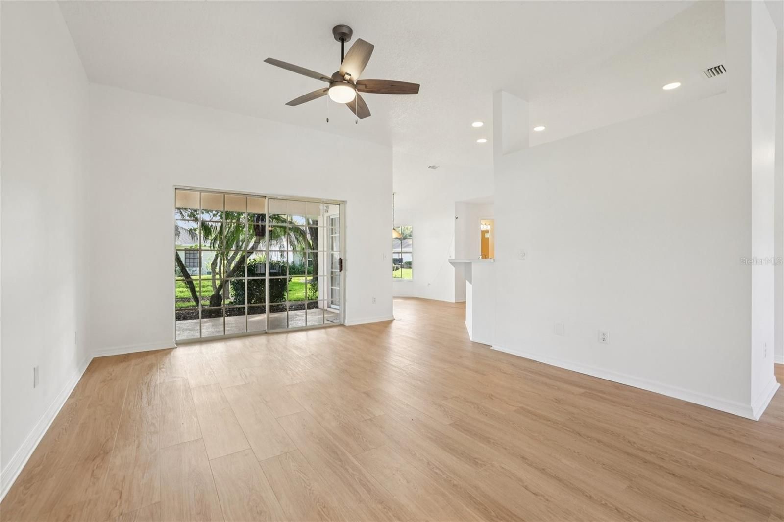 One or more photo(s) has been virtually staged. Experience the best of Florida living in this inviting home on a spacious corner lot in the desirable 55+ community of Baytree. Graceful oak trees, a circular driveway, and lush landscaping create a warm welcome. Inside, natural light and soaring vaulted ceilings enhance the open, flowing layout. New luxury vinyl plank flooring in soft, neutral tones and freshly painted interiors give the home a bright, modern feel. The thoughtfully designed kitchen features a cozy breakfast nook for easy mornings, while the adjacent dining room is ideal for entertaining. The open concept connects seamlessly to the family room and covered lanai, blending indoor and outdoor living for year-round enjoyment. The spacious owner’s suite is a private retreat with dual vanities, a walk-in shower, generous walk-in closet, and separate water closet. Two additional bedrooms, each with a walk-in closet, provides flexibility for guests, hobbies, or a home office. A separate laundry room and abundant storage add convenience. Recent updates include new ceiling fans, updated electrical and GFI outlets, smart thermostat, garbage disposal, water heater (2022), and roof (2018). At Baytree, everyday living feels like a getaway. The low-maintenance HOA covers lawn care, irrigation, landscaping, and annual exterior power washing, giving you more time to enjoy resort-style amenities, swimming, pickleball, fitness, and community gatherings at the clubhouse. Ideally located near downtown Tavares, you’ll be close to waterfront dining, boutique shopping, and lively entertainment. Whether you’re downsizing, wintering in the sunshine, or simply embracing a slower pace, 512 Juniper Way offers comfort, community, and carefree living.
