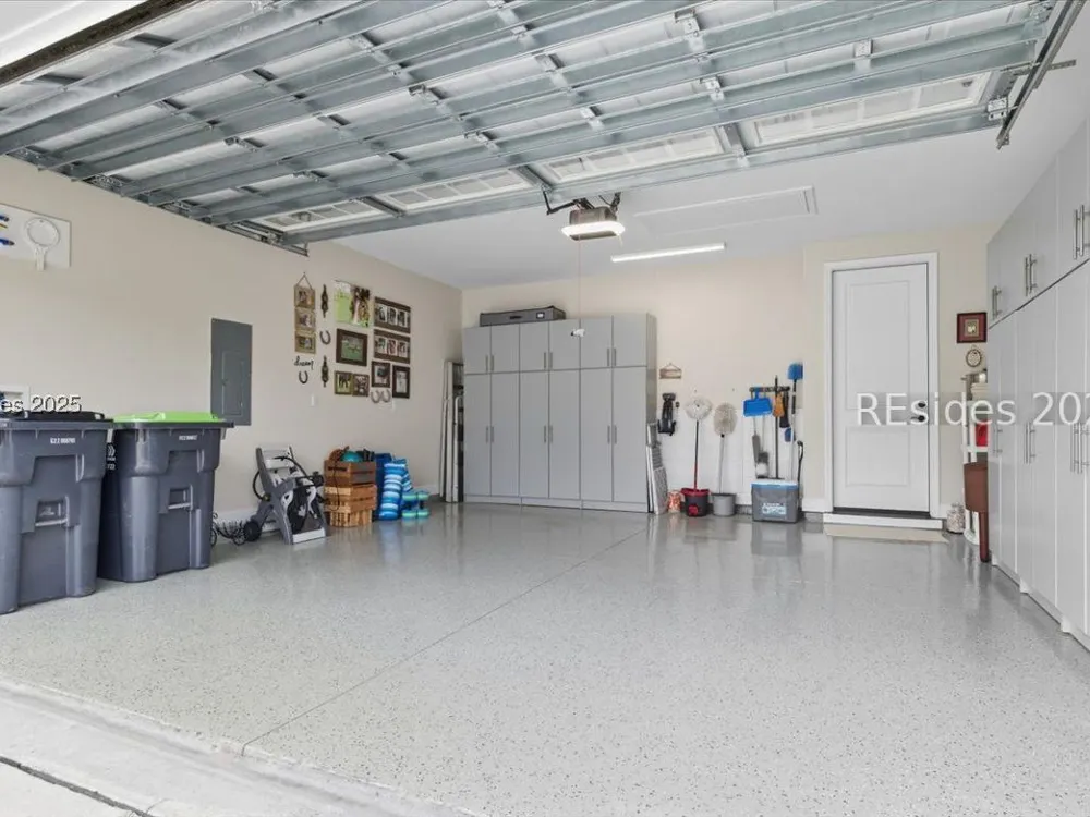Welcome to paradise in Latitude Margaritaville! This stunning Caicos model offers an unbeatable location with gorgeous lagoon views, just a short stroll to the world-class amenities. Relax on your screened lanai with epoxy flooring or enjoy the open-concept interior featuring a foyer, dining room, and great room. The gourmet kitchen is a showstopper with stainless steel gas appliances, Cambria quartz counters, island sink, level 4 cabinetry with soft-close, under-cabinet lighting, crown molding, and custom storage features. Designer touches flow throughout with trey ceilings, neutral finishes, 8' doors, 5 " baseboards, recessed and custom lighting, plus reading lights in the primary suite. The spa-like primary bath boasts a seamless glass shower and ceiling-height tile, while wood shelving outfits every closet. A spacious guest room with nearby bath, private den with French doors, and well-planned laundry add functionality. The 2-car garage includes custom cabinetry and epoxy floors. Resort-style living at its best!