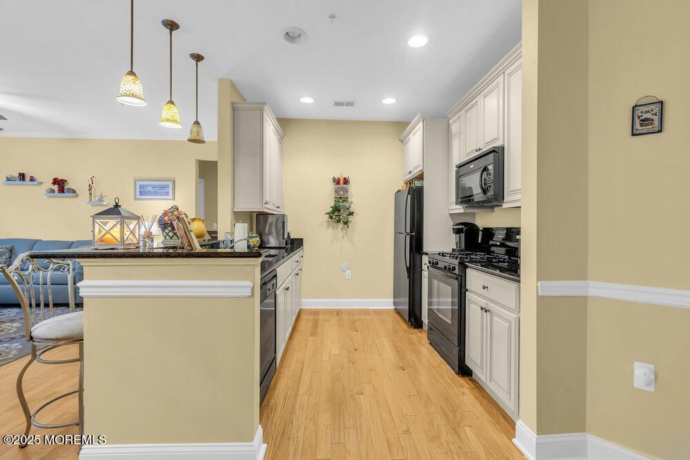 Discover the perfect blend of comfort and convenience in this inviting first-floor end unit of this premier 55+ community. This thoughtfully designed 2-bedroom, 2-bathroom home welcomes you with rich hardwood flooring throughout the living spaces, creating warmth and elegance in the main areas. Both generously sized bedrooms feature plush carpeting for comfort and tranquility. The desirable end-unit location provides enhanced natural light and added privacy, while first-floor living offers ease and accessibility. The well-appointed kitchen flows seamlessly into the living area, perfect for both everyday living and entertaining. Your private outdoor space provides a peaceful retreat for morning coffee or evening relaxation. The luxurious primary bedroom includes its own ensuite bath and ample closet space, while the second bedroom is ideal for guests, hobbies, or a home workspace. Convenient in-unit laundry adds to the effortless lifestyle this home provides. Resort-style community amenities elevate everyday living with a pool, fitness center, fully equipped clubhouse with social spaces, and so much more.