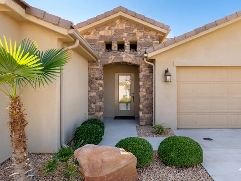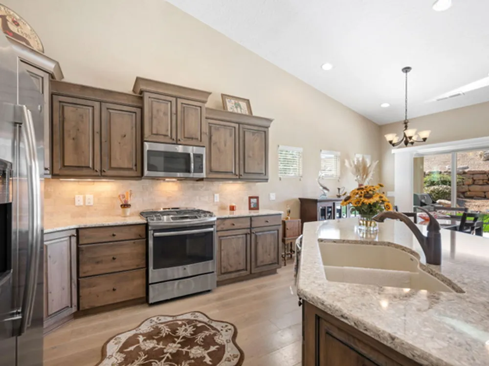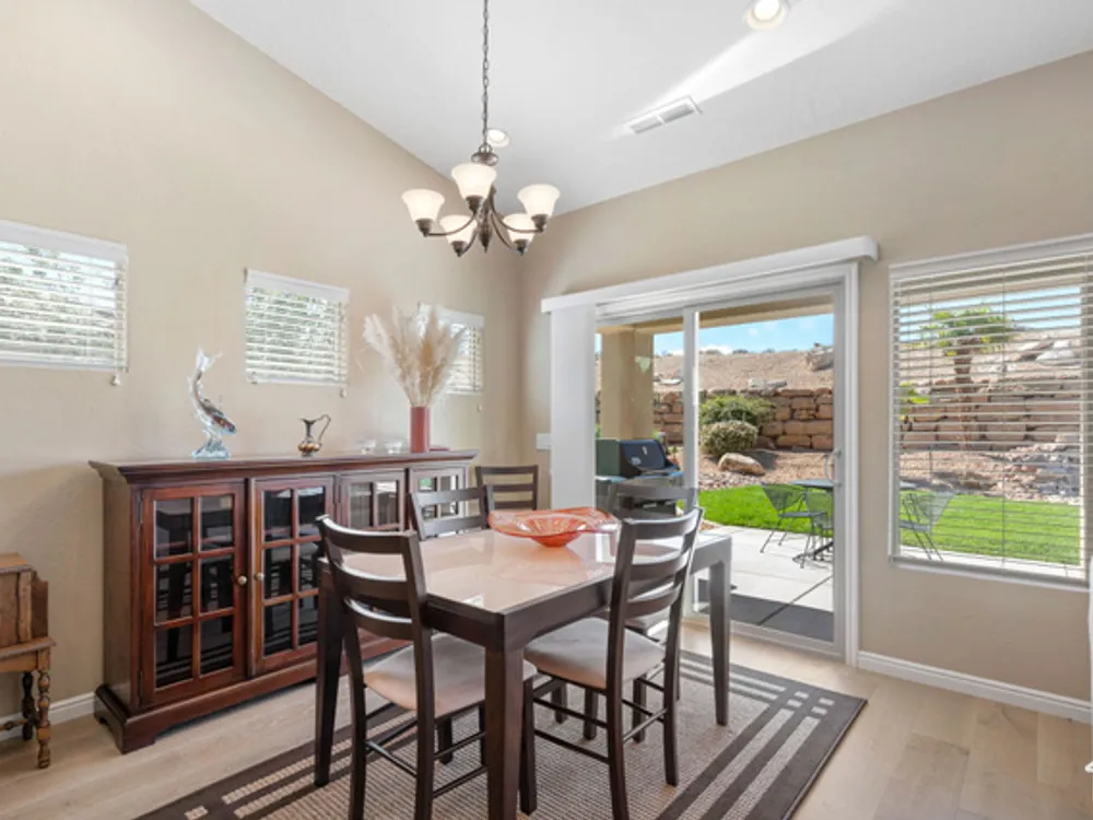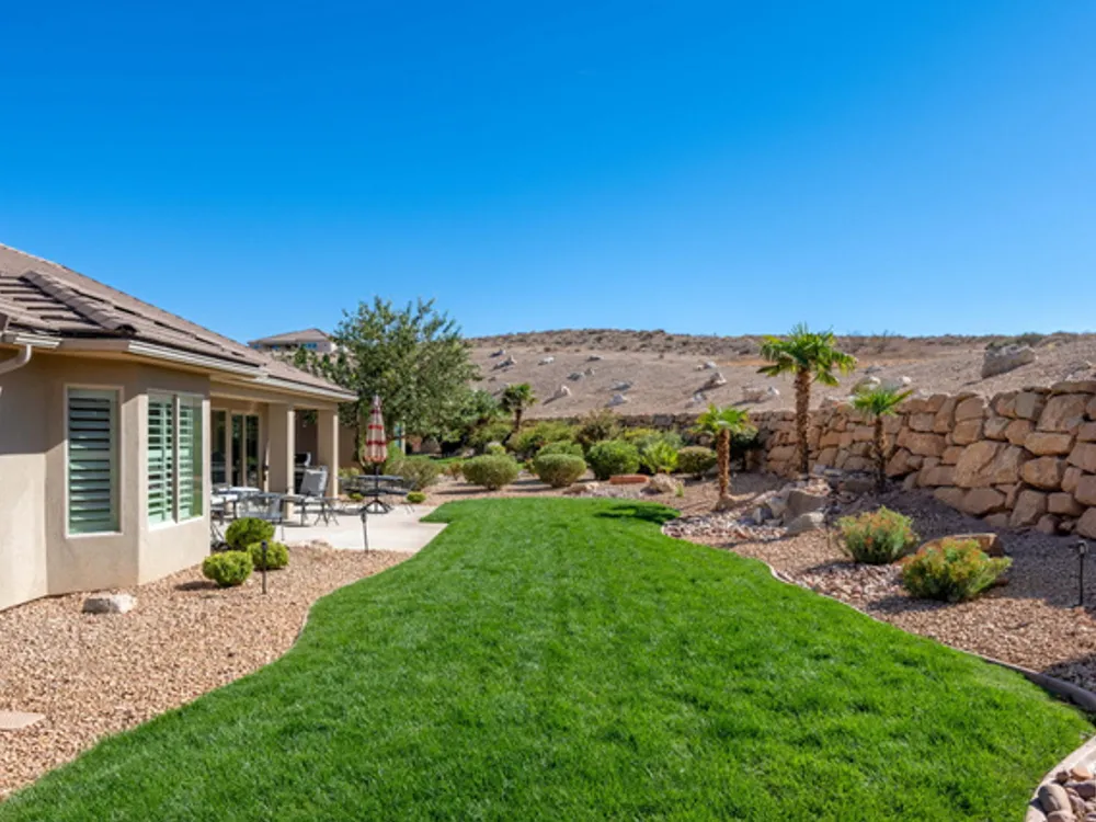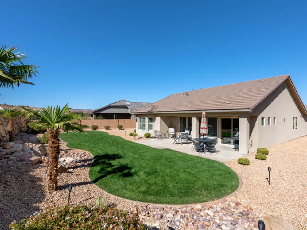 Located on the southern edge of Sun River, this 2-bedroom, 2-bath home with a bonus office combines timeless finishes with modern convenience. A rare find, it features an open floor plan, hardwood floors, quartz countertops, built-in office desk, gas fireplace, and a spacious 3-car garage. Enjoy the privacy of no rear neighbors and endless desert right out your back door. Sun River is Southern Utah's award-winning 55+ community, offering an 18-hole championship golf course, indoor and outdoor pools, pickleball and tennis courts, and more than 80 clubs and groups to join. Set among peaceful, well-kept streets, it's the perfect neighborhood crafted for an active retired lifestyle.