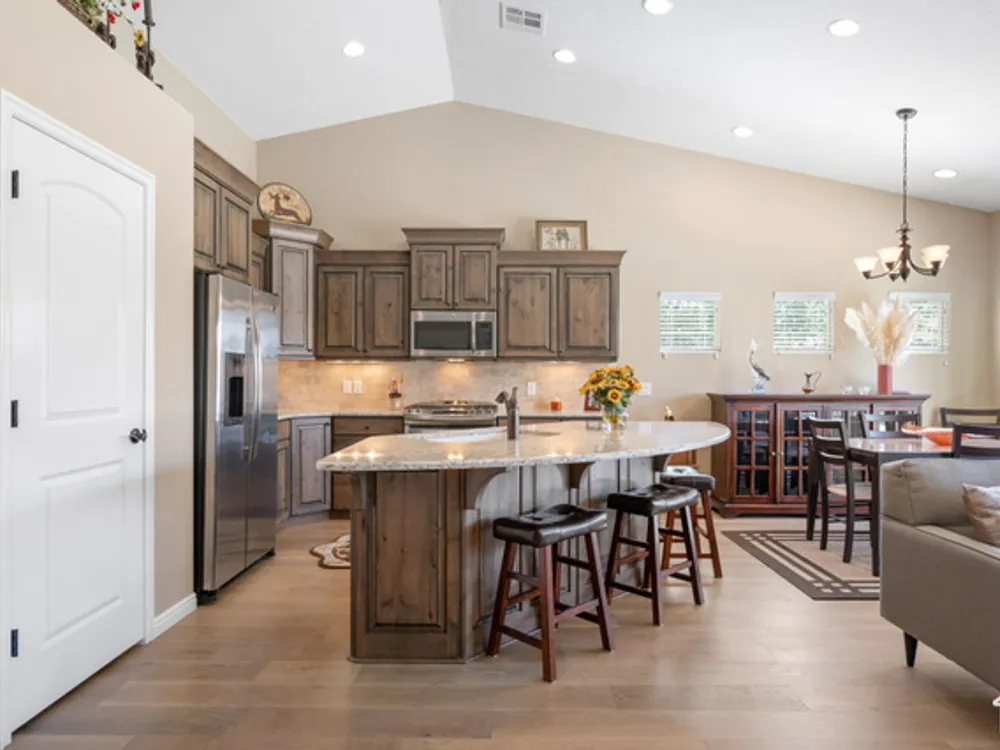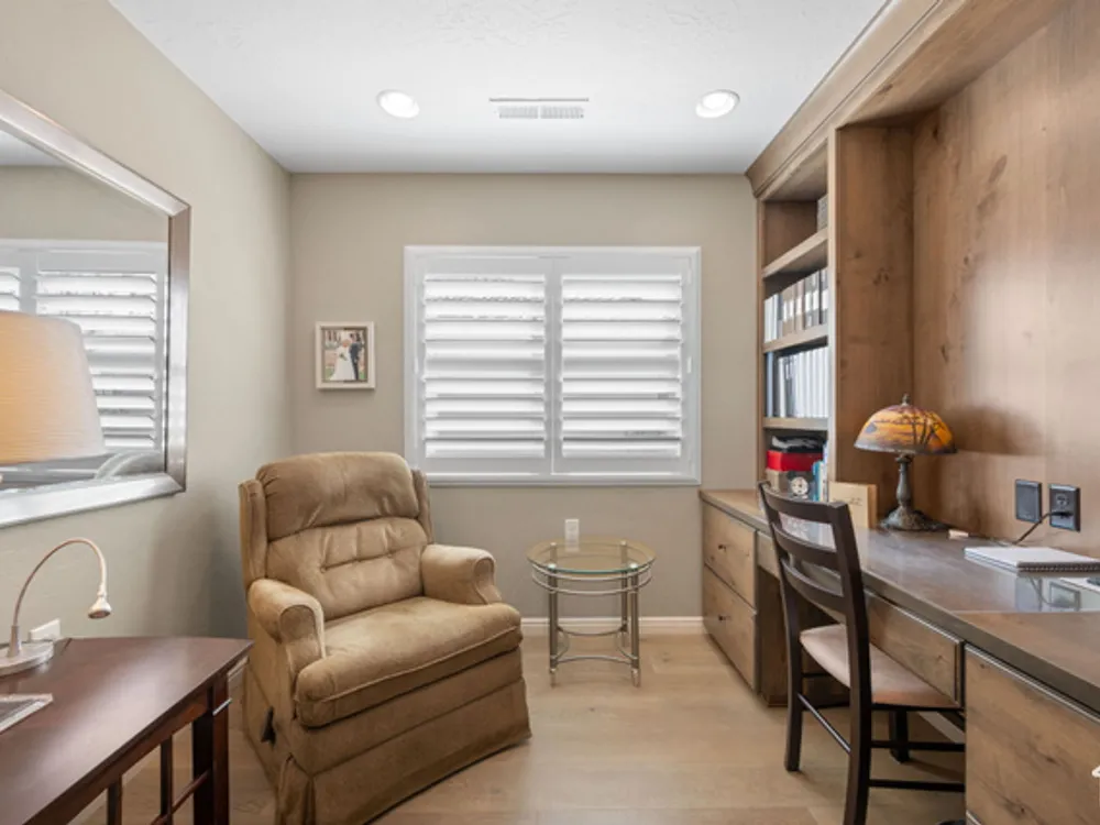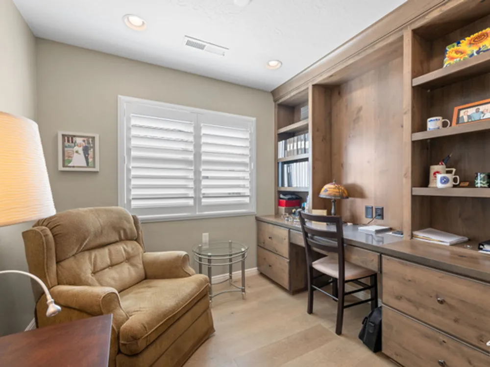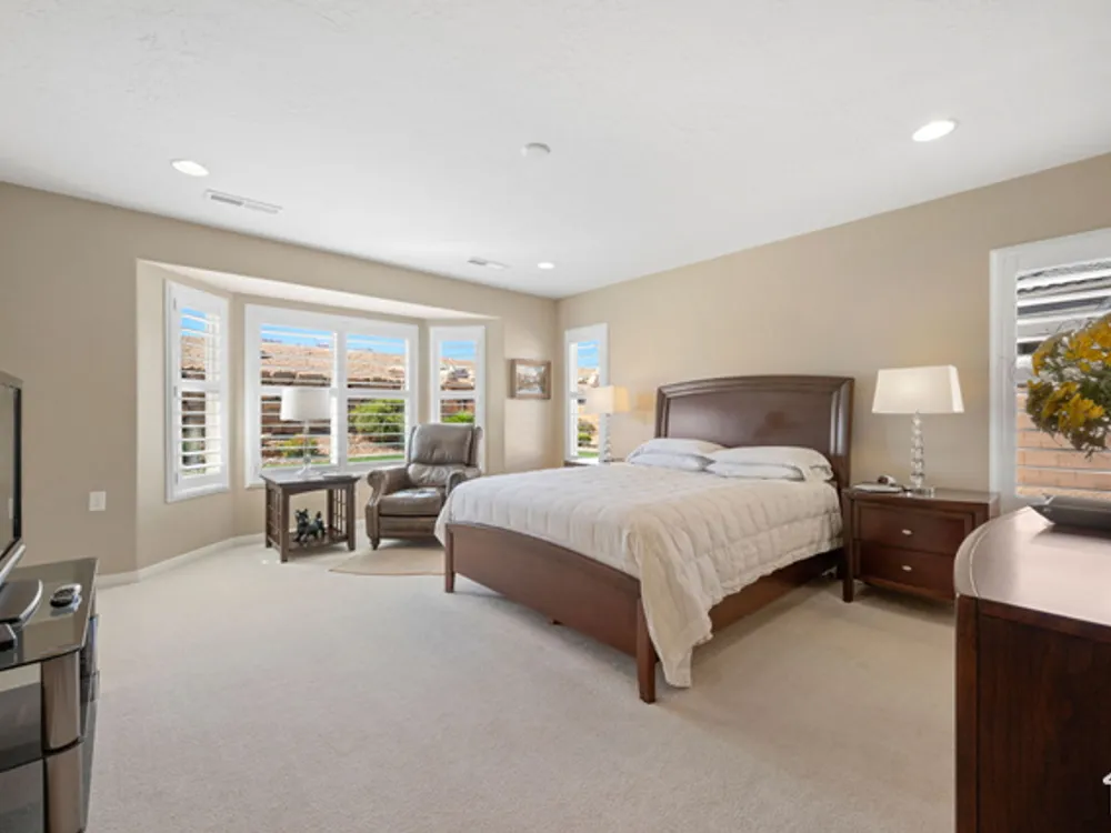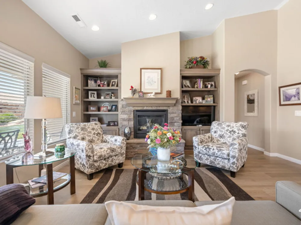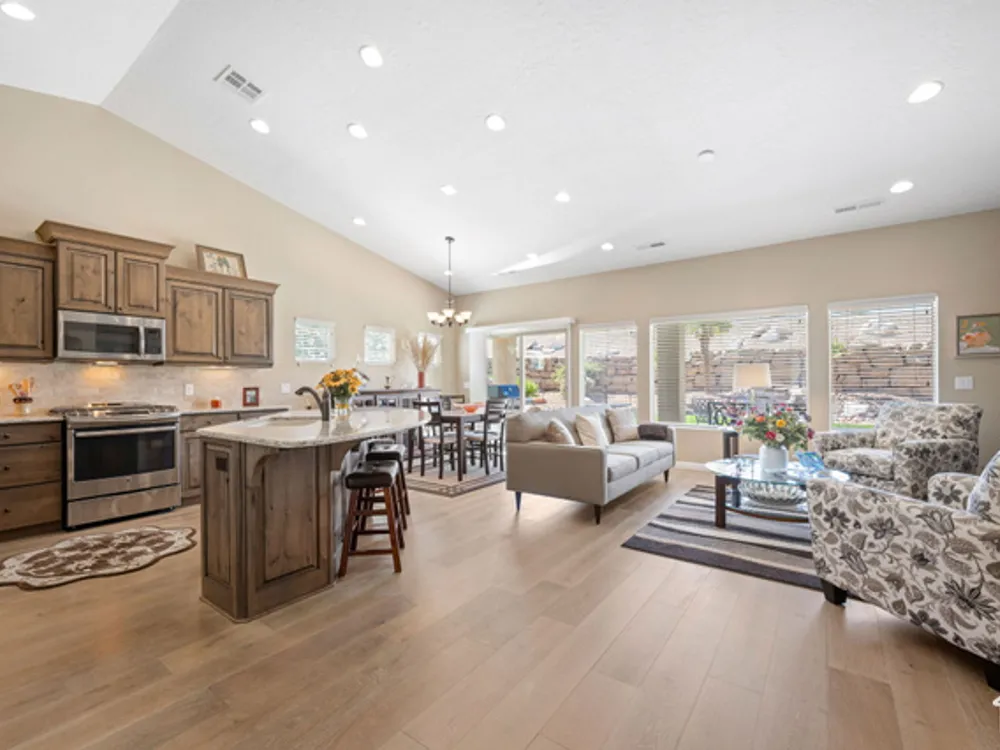 Located on the southern edge of Sun River, this 2-bedroom, 2-bath home with a bonus office combines timeless finishes with modern convenience. A rare find, it features an open floor plan, hardwood floors, quartz countertops, built-in office desk, gas fireplace, and a spacious 3-car garage. Enjoy the privacy of no rear neighbors and endless desert right out your back door. Sun River is Southern Utah's award-winning 55+ community, offering an 18-hole championship golf course, indoor and outdoor pools, pickleball and tennis courts, and more than 80 clubs and groups to join. Set among peaceful, well-kept streets, it's the perfect neighborhood crafted for an active retired lifestyle.