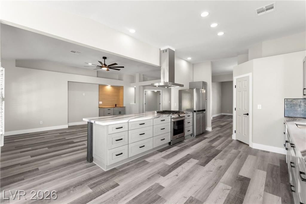 Welcome to this beautifully remodeled home in the highly sought after Los Prados golf course community. Every detail has been thoughtfully upgraded, offering a clean modern feel inside and out. The reimagined kitchen and living area are optimized for both functionality and flow, featuring matching quartz surfaces throughout for a cohesive upscale finish. Luxury plank flooring runs seamlessly through the entire home, adding both durability and style. Enjoy peace of mind with a brand new AC unit backed by a 10 year warranty. The front and backyard have been refreshed with new landscaping, creating inviting outdoor spaces perfect for relaxing or entertaining. Located in a guard gated golf course community, residents enjoy scenic surroundings and a lifestyle centered around comfort and convenience.