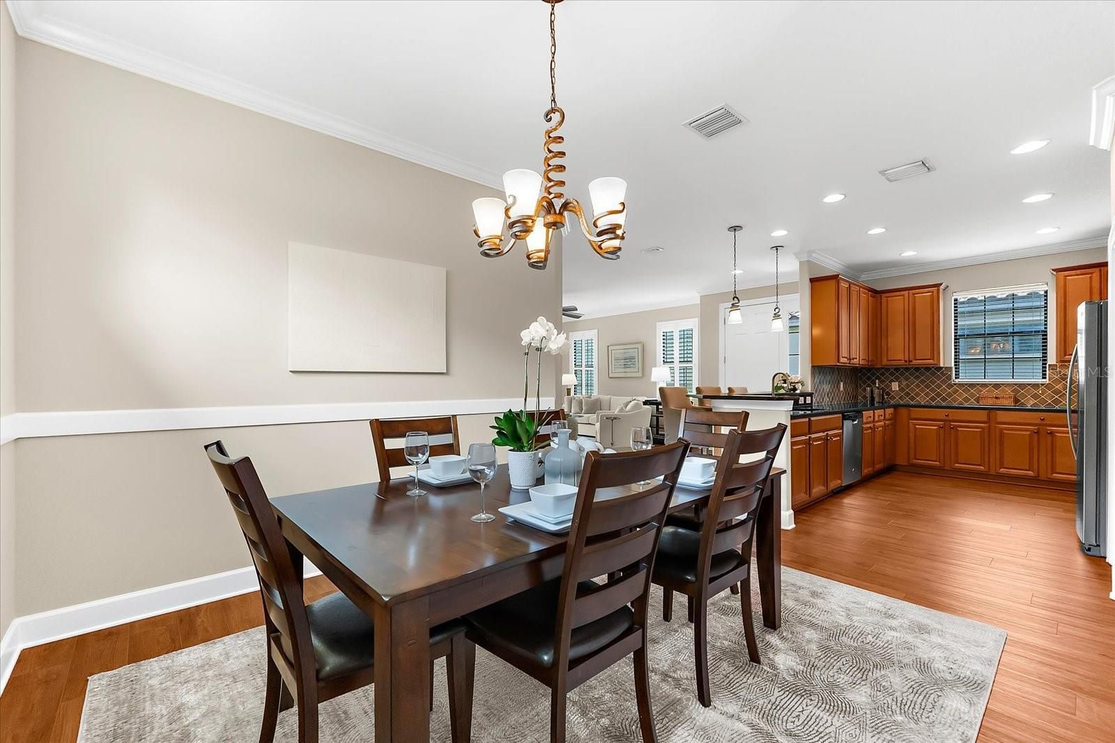 PRICED TO SELL! Resort-style living awaits in Esplanade Golf and Country Club of Lakewood Ranch! Welcome to effortless, maintenance-free living in one of the area’s most sought-after communities. Nestled on a private lot, this meticulously maintained Roma floor plan offers comfort, function, and style in equal measure. Designed with everyday living and entertaining in mind, the open-concept layout features 2 generously sized bedrooms, 2 full bathrooms, and a versatile office or den. The split-bedroom floor plan provides ideal privacy for guests while maintaining a natural flow throughout the home. At the heart of the home, the chef’s kitchen shines with 42" cabinets, crown molding, granite countertops, a tile backsplash, gas stove, stainless steel appliances, and a layout perfect for hosting. The kitchen seamlessly connects to the spacious great room and extends out to the private, oversized lanai—ideal for dining al fresco, relaxing with a good book, or entertaining family and friends. Unwind in the serene owner’s suite, complete with an oversized walk-in closet and a spa-like bath featuring dual sinks, a dedicated vanity, and a spacious shower. Upgrades to this home include crown molding, plantation shutters, luxury vinyl flooring (2025), fresh exterior paint (2025), a new refrigerator, and a new dryer—offering peace of mind and turnkey convenience. Living in Esplanade is like being on vacation every day. Enjoy world-class amenities including a resort-style zero-entry pool, resistance pool, state-of-the-art wellness and fitness center, and a vibrant 12,000 sq. ft. clubhouse. Sports enthusiasts will love access to pickleball, tennis, bocce, and kayaking. Golfers can enjoy the challenging 18-hole course with pay-to-play access. The lifestyle here is as social as it is relaxing, with a full-time lifestyle director coordinating clubs, events, and community gatherings. Treat yourself at the on-site salon and spa or indulge in the dining options at The Barrel House Bistro, the poolside Bahama Bar & Café, or attend cooking classes at the Culinary Center. Located within one of Lakewood Ranch’s most desirable master-planned communities, this home is close to top-rated schools and just minutes from UTC shopping and dining, SRQ Airport, downtown Sarasota, and the stunning Gulf Coast beaches. This home is more than just a place to live—it's a lifestyle you'll never want to leave.