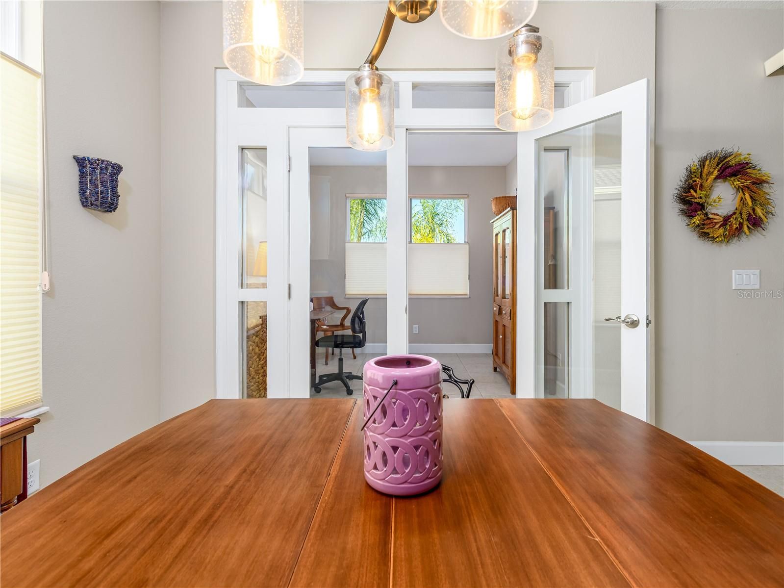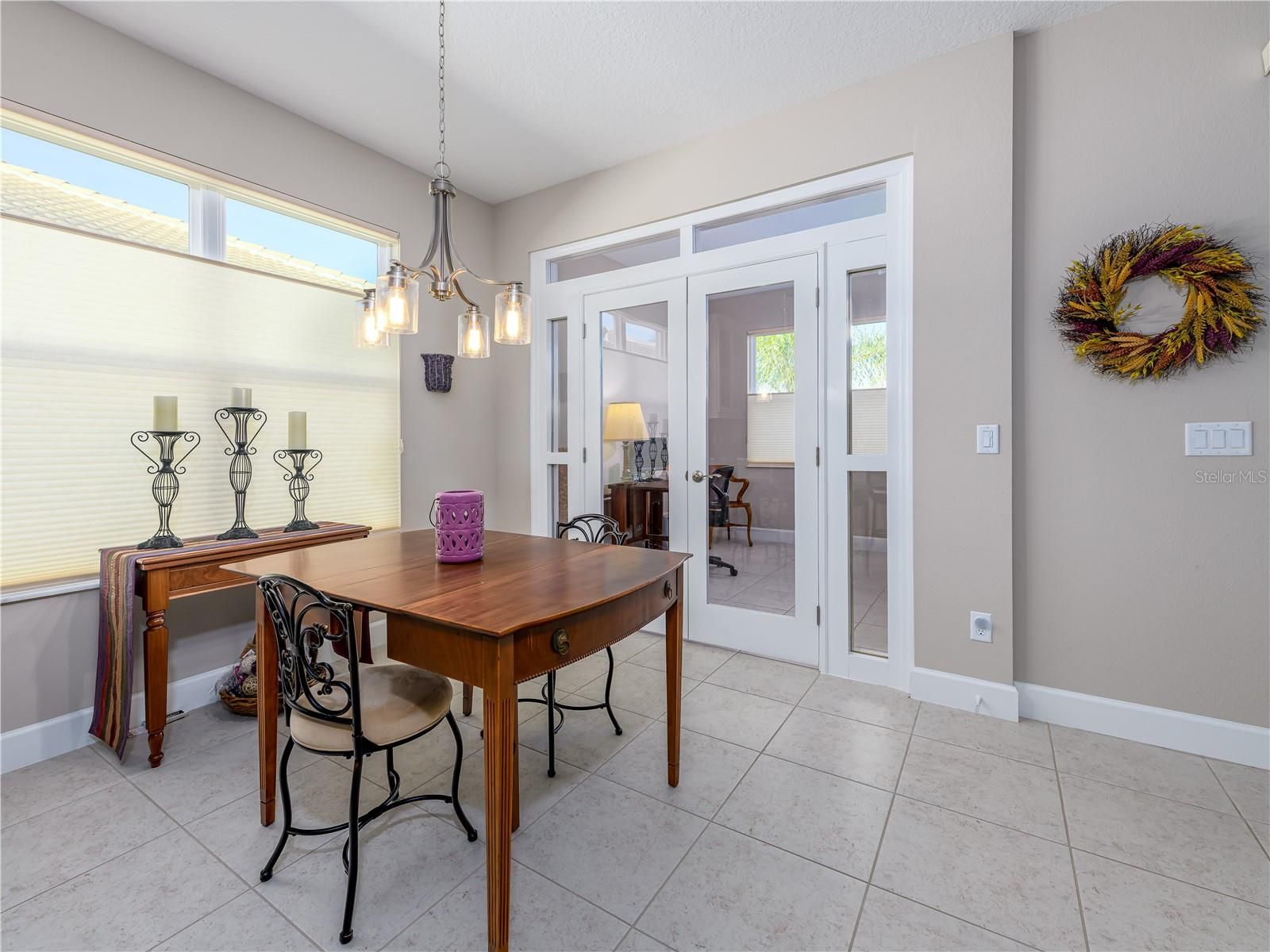 Enjoy resort-style living in Valencia Del Sol’s exclusive 55+ private community boasting luxury and convenience. Built in 2021, this meticulously maintained 2-bedroom, 2-bathroom plus custom-enclosed office single-single family home features over 1,400 square feet of flawlessly designed living space. The open floor plan, perfect for entertaining, sweeps you into a glorious water and greenery view from your living space through the extended lanai. Any professional or amateur chef will love the kitchen featuring a gas stove/range, granite countertops, pull out pantry shelves, 42” soft-close cabinets, large island and a flow that makes cooking a breeze. Off the main living area, you will find the primary suite with dual walk-in closets and a beautifully designed bathroom featuring a large shower, dual vanities, and a linen closet. Additional features include 9-foot ceilings, a two-car garage and hurricane impact windows for effortless peace of mind. Residents of Valencia Del Sol enjoy a vibrant, low-maintenance lifestyle with resort-style amenities including a clubhouse with bistro and outdoor bar, fitness center, beach-entry pool, pickleball and tennis courts, bocce ball, game rooms, and organized social events. Two dog parks add convenience for pet owners. Ideally located close to shopping and just minutes from beaches and Tampa International Airport. This move-in ready home offers the best of Florida living in a community large enough to offer all the amenities and small enough where friends are right around the corner.
