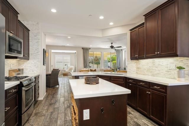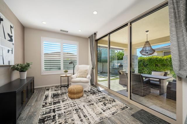Move-in ready and beautifully finished, this 2BD/2BA + office/den home is located in the highly sought-after Trilogy Polo community. This popular Monaco model has been meticulously maintained and showcases premium finishes throughout. Step inside to discover a thoughtfully designed floor plan featuring a great room with a decorative fireplace that flows seamlessly into the dining area, den, and updated kitchen--creating an ideal setting for both everyday living and entertaining. The kitchen is appointed with stainless steel appliances, quartz countertops, a designer backsplash, and enhanced cabinetry with ample storage. Designer touches throughout the home include recessed lighting, wood shutters, tile flooring in the main living areas, new carpet in the bedrooms, and elegant two-tone paint.The primary suite offers a peaceful retreat with a walk-in closet, dual vanities, quartz countertops, and an oversized tiled shower with bench seating. A large rolling wall of glass opens to the private outdoor living space, creating a seamless indoor-outdoor experience. The backyard is perfect for relaxing or entertaining, featuring a covered patio, firepit, and soothing fountains in both the entry courtyard and backyard. Club membership is available for transfer, offering a significant value compared to the cost of a new membership. Membership provides access to exceptional resort-style amenities, including dining at June Hill's Table, a wellness and fitness center, lap and lounge pools with spa, an indoor golf simulator, billiards, shuffleboard, and courts for tennis, pickleball, and bocce. Experience the lifestyle, comfort, and vibrant community this home has to offer.