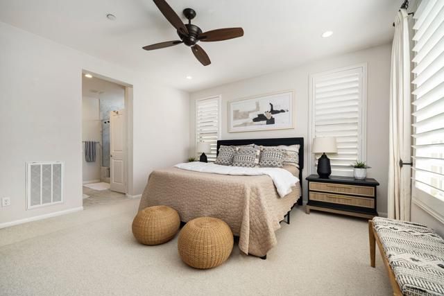 - High Ceilings, Recessed Lighting, Open Floorplan, Walk-In Closet(s), Living Room, Primary Suite, Den