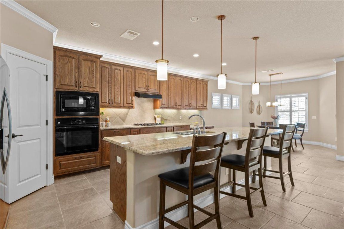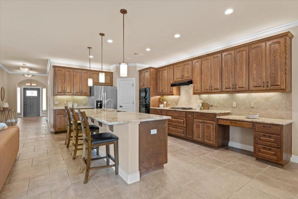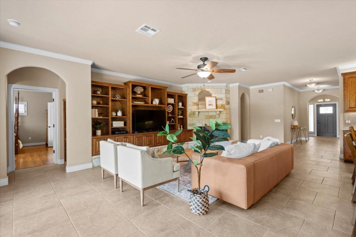 - Breakfast Bar, Bookcases, Ceiling Fan(s), Crown Molding, Coffered Ceiling(s), Separate/Formal Dining Room, Entrance Foyer, High Ceilings, In-Law Floorplan, Kitchen Island, Multiple Living Areas, Multiple Dining Areas, Main Level Primary, Open Floorplan, Pantry, Stone Counters