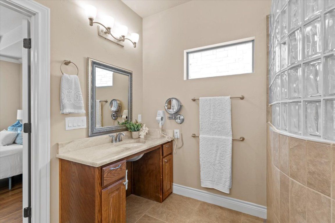 **Stunning Jimmy Jacobs Custom Home in Heritage Oaks 55+ Community in Georgetown, TX** Beautifully maintained 3-bed, 2.5 bath home with 2 living areas and 2 dining areas offer flexibility with open floor plan and high-end finishes. Features include granite countertops, fireplace, custom built-ins, immaculate wood floors, large picture window, plantation shutters, new AC unit and a luxurious primary suite with walk-in shower and dual closets. Enjoy peaceful mornings on the partially covered deck overlooking a greenbelt and xeriscaped garden paths. Includes refrigerator, washer, and dryer. All on one level from the driveway and front door to the deck overlooking the meadow behind the house! Located in Heritage Oaks, an exclusive active adult community with a clubhouse, 24-hour fitness center, walking trails, pond, billiards, library, and a full calendar of social events. Just minutes from shopping, dining, and medical facilities—only 30 minutes to Austin!