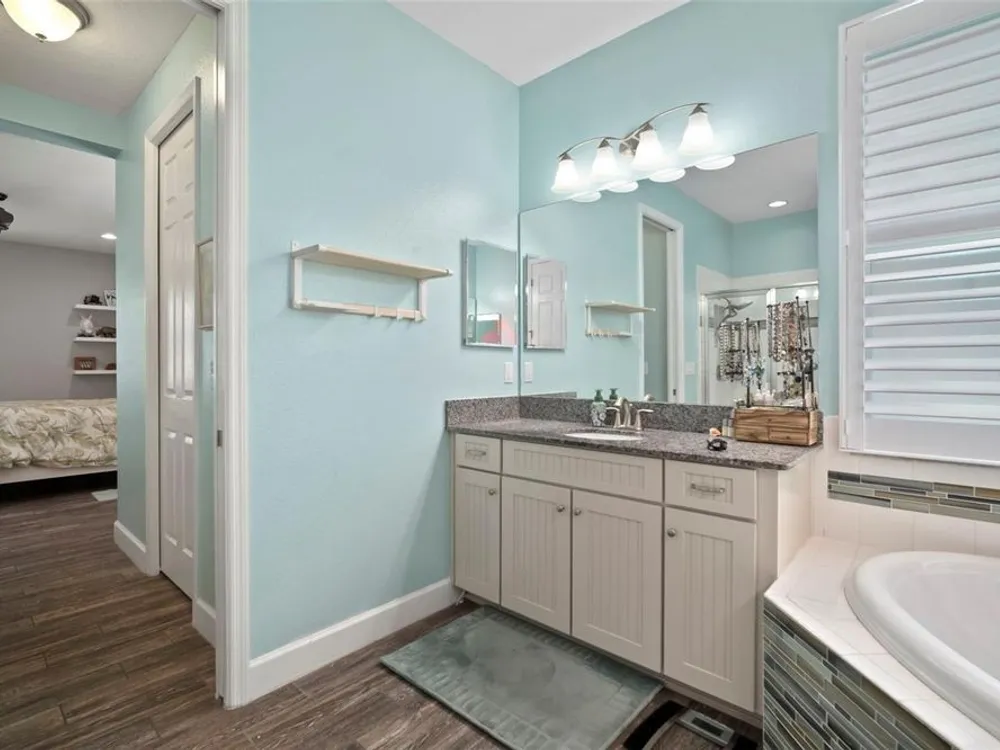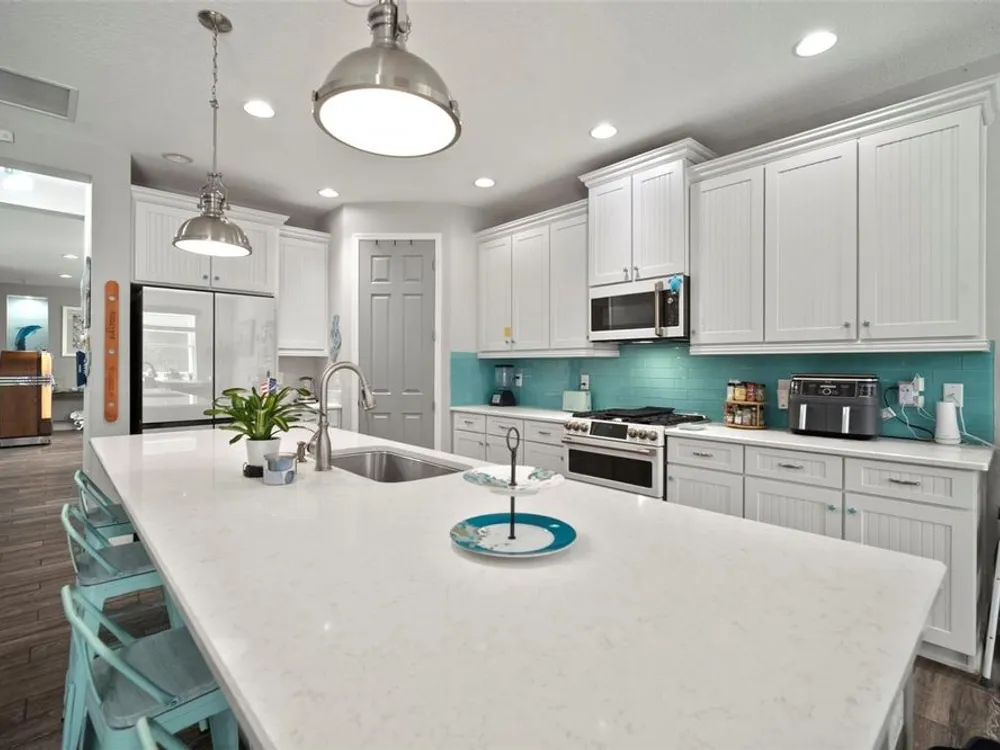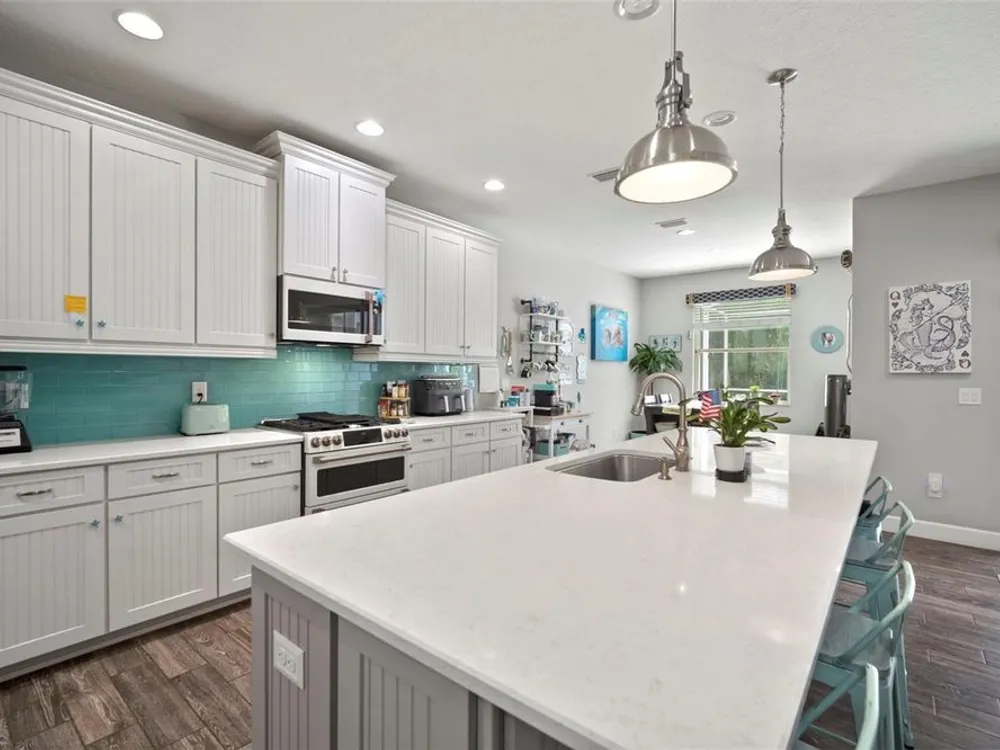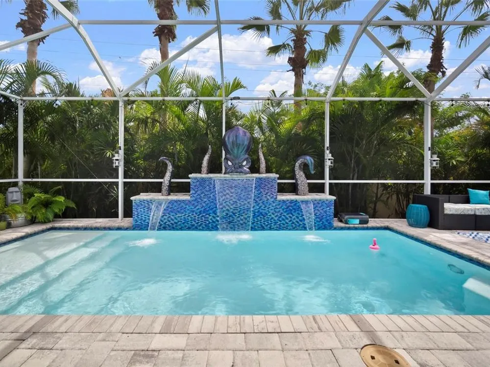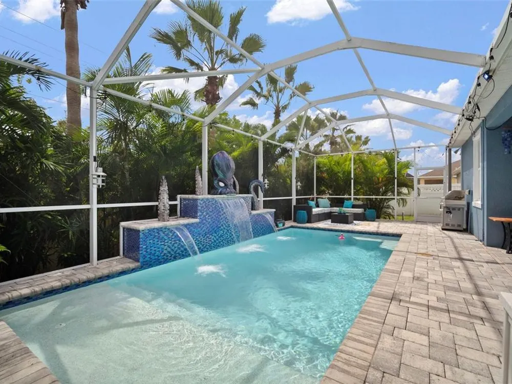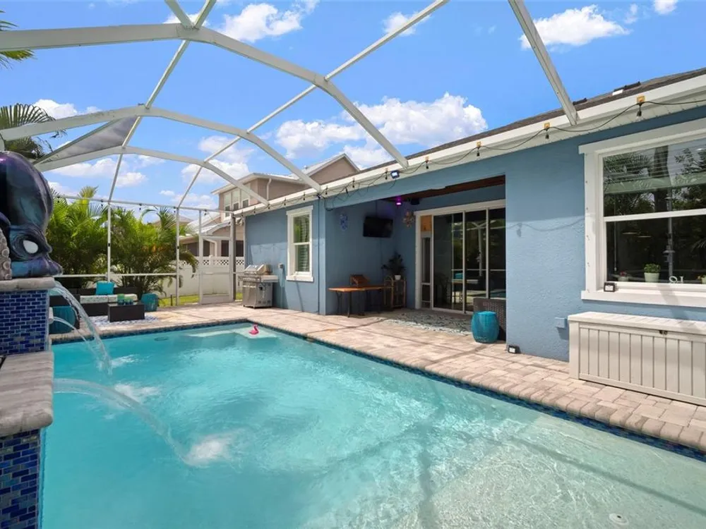 This is the MiraBay home you’ve been waiting for; in this stunning 4 bedroom, 2.5 bathroom, 3-car garage pool home, perfectly positioned on one of the largest lots in Admiral Pointe. From the moment you arrive, you’ll be welcomed by lush tropical landscaping that sets the tone for true Florida living. Step inside to find an open floor plan with wood plank tile throughout the main floor, creating a warm and inviting flow. The gourmet kitchen is the heart of the home, featuring upgraded cabinetry, with top of the line GE café microwave and double oven with a 6-burner gas stove, oversized island, and an eat-in space that overlooks the living area. The primary suite is conveniently located on the main level, offering his-and-hers closets and a spa-inspired bathroom with separate vanities, a garden tub, walk-in shower, and additional walk-in closet space. Upstairs, you’ll find three spacious bedrooms, a full bathroom, and a versatile loft—perfect for a home office, game room, or cozy retreat. But the real showstopper is the backyard! Step outside to your private paradise featuring a heated, inground pool with waterwall feature and with screened enclosure, a separate outdoor dining area under a pergola, and an outdoor kitchen space plumbed for gas and electric, ready for your custom design. Whether you’re hosting a barbecue, enjoying cocktails al fresco, or letting your fur baby play in the fenced backyard, this home is designed for fun and relaxation. This is more than a home—it’s the Florida lifestyle at its finest. Don’t miss your chance to make this MiraBay beauty yours! The exclusive Admiral Pointe Portion of MiraBay has its own clubhouse for events and activities and its own heated year-round pool for your enjoyment. This is truly a family-friendly community with lots to do, every day. Admiral Pointe has their own clubhouse and heated pool for ease and convenience as well as the main pool and clubhouse in the main portion of MiraBay. As a resident of this gated resort-style coastal community, you will feel like you are on vacation every day. This home is located in the Beautiful waterfront, resort-style community of MiraBay!!!! This resort-style community has a community clubhouse, heated-resort-style Olympic swimming pool, 136 ft water slide, parks, 3 playgrounds, gym, cafe with a full liquor license, basketball courts, tennis courts, fitness center, 135-acre lagoon where you can rent kayaks and paddle away, and much, much more. You will feel like you’re living in a 5-star resort! This community has it all. This home is centrally located and convenient to Tampa, Orlando, Bradenton, Sarasota, and St. Petersburg where you can experience the best Florida beaches, shopping, and entertainment. The Florida lifestyle you've been dreaming of awaits you. Paradise awaits! Call today for your private showing.