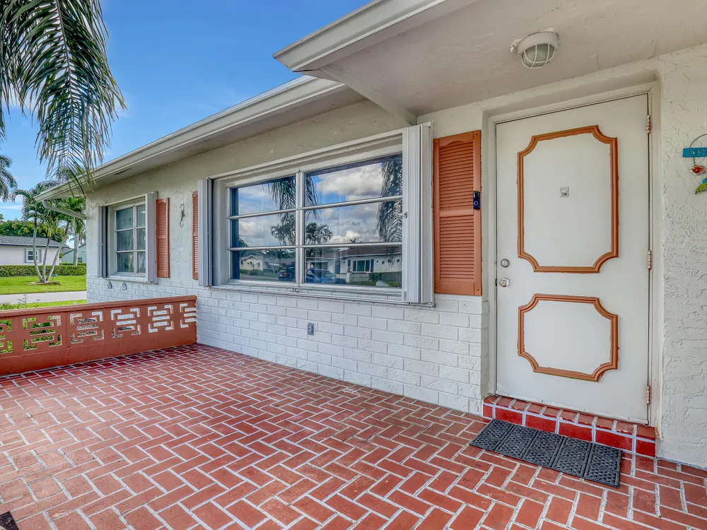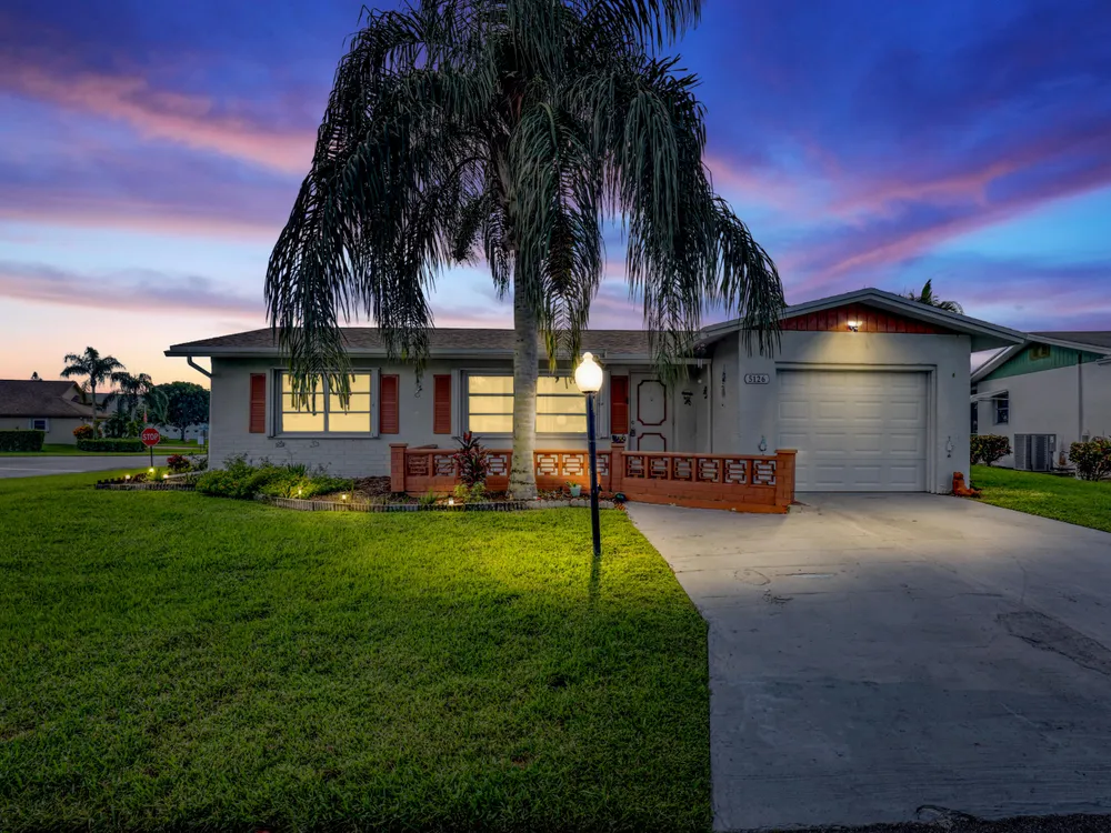 Charming 2 BR, 2 BA home with 1-car garage on a corner lot. Spacious floor plan featuring an updated kitchen with granite countertops and stainless steel appliances (2023). Roof, A/C, and garage door all replaced in 2021. Updated lighting throughout. Perfect for gardeners with flower beds and shrubs surrounding the house. Accordion storm shutters on all windows. Ready for your personal touches. Located in an active 55+ community in the heart of WPB, close to City Place, FL Turnpike, and I-95.