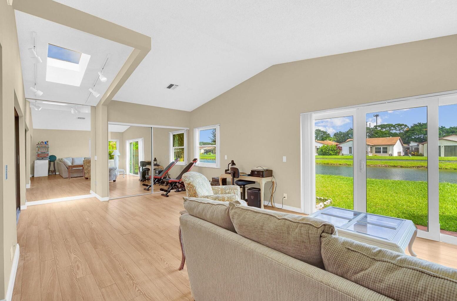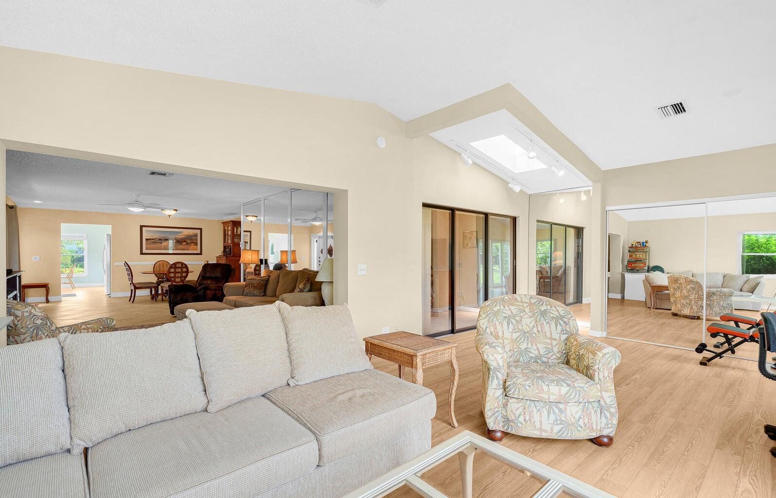 - Entrance Foyer, Skylights, Split Bedrooms, High Ceilings, Walk-In Closet(s), Family Room, Florida Room, Living/Dining Room, Kitchen/Dining Combo, Impact Glass, Primary Downstairs, Separate Shower