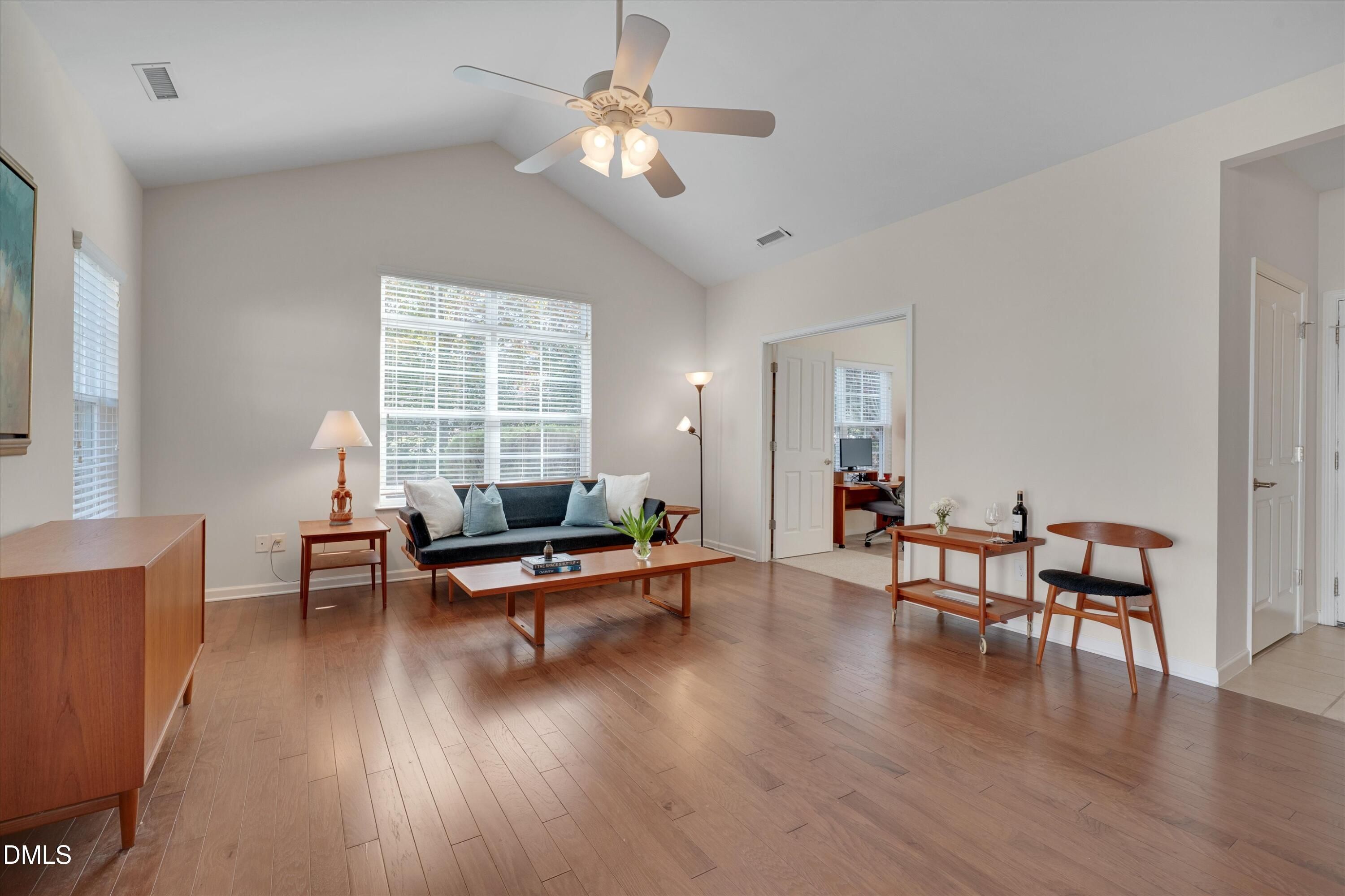 Experience effortless single-level living in this beautifully maintained home located in the highly desirable 55+ Active Adult, senior community, Villas at Culp Arbor — perfectly positioned between Chapel Hill and Durham, NC. This move-in ready, low-maintenance home offers exceptional convenience for those seeking a relaxed lifestyle close to world-class healthcare, shopping, dining, and entertainment. This well-designed single-story home features 2 bedrooms, 2 full bathrooms, and a den/study, making it perfect for downsizing, aging-in-place, or those who want flexible space for a home office or guest room. You'll love the open floor plan, excellent natural light, and vaulted ceilings that create a spacious and welcoming feel. The hardwood floors throughout the main living areas provide warmth, style, and easy maintenance—one of the most sought-after upgrades for today's buyers. The kitchen is designed with both function and comfort in mind, offering an island, granite countertops, generous cabinet storage, and a seamless connection to the dining and living areas. A double-sided fireplace adds charm to both the living and sitting rooms, creating cozy ambiance year-round. The private courtyard patio, accessible from both the living room and the owners suite, extends your living space outdoors—ideal for morning coffee, relaxing with a book, gardening, or dining al fresco. The owners suite includes a double vanity, a spacious walk-in shower, and new tile flooring. Additional highlights include NEW carpet in the bedrooms, a large laundry room, generous storage, and an oversized 2-car garage. For added peace of mind, this home has been pre-sale inspected with repairs completed and features a NEW HVAC system (Oct 2025). Refrigerator and dishwasher are less than 2 years old and the refrigerator and washer/dryer convey. Residents at Villas at Culp Arbor enjoy a vibrant 55+ lifestyle with amenities including a clubhouse and pool, walking areas, and community activities—perfect for staying social, active, and connected. Situated just minutes from UNC-Chapel Hill, Duke University, UNC Hospitals, Duke Medical Center, The Streets at Southpoint, and major Triangle commuter routes, this location is ideal for anyone wanting to enjoy the best of both Chapel Hill and Durham living.