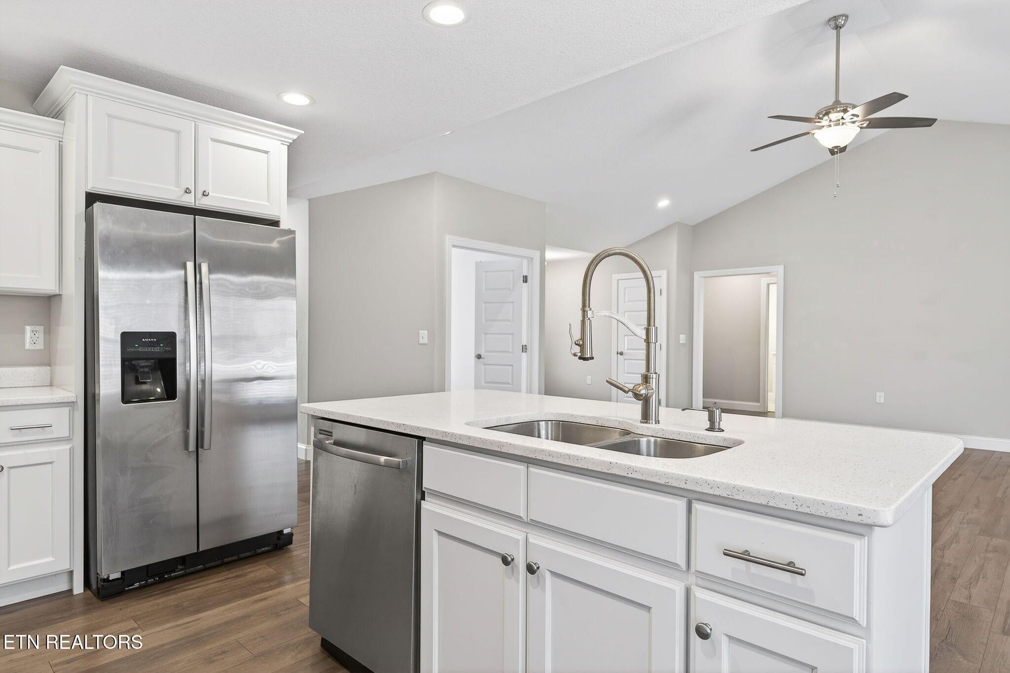 2017 Built | 1,737 SF | Open Concept + Fireplace | Privacy + Parking + Walkable Fairfield Glade Fun • Convenient Fairfield Glade location with no close neighbors for extra privacy • Built in 2017 with 1,737sf of living space • Concrete driveway with plenty of parking + oversized turnaround space • Professionally landscaped yard with concrete curbing • Rear open deck—perfect for relaxing and watching wildlife in the wooded backdrop INSIDE FEATURES: • Open floor plan connecting the living room, dining, and kitchen • Vaulted ceiling for a bright, airy feel • Cozy gas log fireplace in the living room KITCHEN HIGHLIGHTS: • White cabinets with soft-close doors & drawers • White quartz countertops • Pantry for extra storage • Large island with counter-height seating • Stainless appliances, including: - Smooth-top range - Over-the-range microwave - Dishwasher - Refrigerator PRIMARY SUITE: • Primary bedroom with trey ceiling • Primary bath includes: - Oversized vanity with granite top + double sinks - Walk-in shower with glass doors - Tile flooring - Huge walk-in closet GUEST SPACE + FLEX ROOM: • Two guest rooms • One with double doors + two closets (great office/flex room) • One with a transom window for natural light + new ceiling fan GUEST BATH FEATURES: • Tub/shower combo • Granite-top vanity • Tile flooring PRACTICAL EXTRAS: • Laundry room with storage cabinets + folding area • Insulated 2-car garage with cabinet storage WALKABLE LIFESTYLE + HOA BENEFITS: • Walking distance to the new Druid Hills Clubhouse (set to open late summer) • Also walking distance to: - Library - Miniature golf - Plateau Creative Arts Center (classes & activities) • HOA dues include sewer and trash service (plus select amenities) FAIRFIELD GLADE AMENITIES: • 5 championship golf courses • 11 lakes with 2 marinas (boating & fishing) • Miles of scenic hiking trails • Pools, pickleball, tennis & fitness center ª Restaurants, banking, medical service