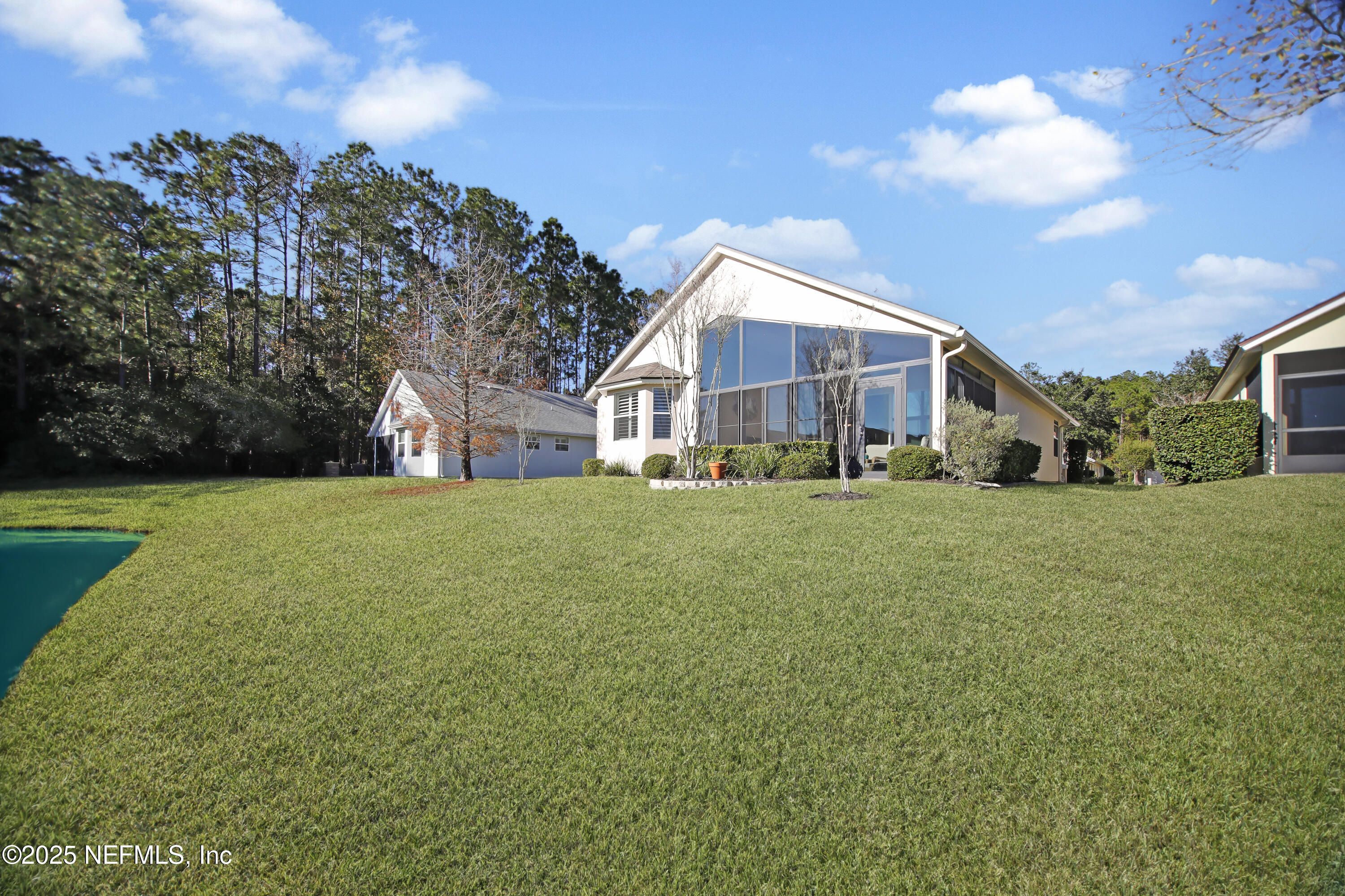 Welcome to Cascades at World Golf Villagean exceptional 55+ gated community offering a refined, resort-style lifestyle. This elegant three-bedroom, two-bath home stands out immediately with its meticulous condition and thoughtful upgrades throughout. The main living areas and bedrooms feature warm, wood-look LVP flooring, while the kitchen, entry, bathrooms, and glassed-in extended lanai are finished with durable tile flooring for a polished, cohesive design. The kitchen is a true highlight both functional and beautiful. It includes 42'' upper cabinets with crown molding, new quartz countertops, and an updated tile backsplash. High-quality Whirlpool appliances (2024), a water purifier, and a comfortable eat-in area complete this impressive space. All appliances convey, ensuring a smooth transition on move-in day. Just off the kitchen, the spacious living and dining areas flow effortlessly toward the rear of the home. Oversized sliding doors open to the tiled, glassed-in extended lanai creating a bright and versatile space perfect for year-round enjoyment. With its stunning water views, this room is ideal for viewing nature, reading, crafting, or evening relaxation with soft water reflections add a calming backdrop to the home's main living areas. The primary suite is a private retreat, enhanced by an extended layout with a bay window that welcomes natural light and captures peaceful water views. The en-suite bath features a tiled walk-in shower, raised double-sink vanity, and tasteful finishes designed for comfort and convenience. Bedroom 2 is generously sized and perfect for guests. Bedroom 3 is non-conforming and features French doors, offering excellent flexibility. A closet can be added easily, or the room can serve as an ideal home office, craft room, studio, or reading space, a versatile area ready to adapt to your lifestyle. The guest bathroom also includes upgraded tile to match the home's quality finishes. The laundry room provides everyday convenience with a washer, dryer, and utility sink. The extended garage offers valuable additional storage via added cabinets and shelving, perfect for tools, seasonal décor, or hobby supplies. Recent system upgrades provide peace of mind and long-term value, including a Water Softener (2025), Water Heater (2023), and HVAC System (2023). Additional interior improvements include plantation shutters, a new kitchen sink and faucets, updated shower door glass (2024), and new ceiling fans in both the living room and lanai. Outside, the seller has added gutters with gutter guards and downspouts, along with recently completed upgraded landscaping, giving the home standout curb appeal. Thanks to the community's included lawn and irrigation maintenance, the exterior stays beautifully maintained without the effort. Living in Cascades means enjoying a vibrant, active lifestyle surrounded by top-tier amenities. At the heart of the community is the impressive 38,000 sq ft Grand Clubhouse and Sports Complex, offering an indoor heated pool, outdoor pool, modern fitness center, card and poker rooms, billiards room, art studio, and a well-appointed library, staffed by a full-time activities director who organizes events, clubs, and social gatherings throughout the year. Cascades provides endless opportunities for recreation, connection, and enrichment. Lawn care, irrigation water, and sprinkler maintenance are all included, ensuring easy, low-maintenance living. Experience the lifestyle you deserve at Cascades at World Golf Village where every day brings new opportunities, every detail feels thoughtfully considered, and your home becomes the centerpiece of a truly enriched way of living. Ideally located near shopping, medical facilities, and more, this move-in-ready home offers comfort, style, and convenience in one of the area's most desirable 55+ communities.