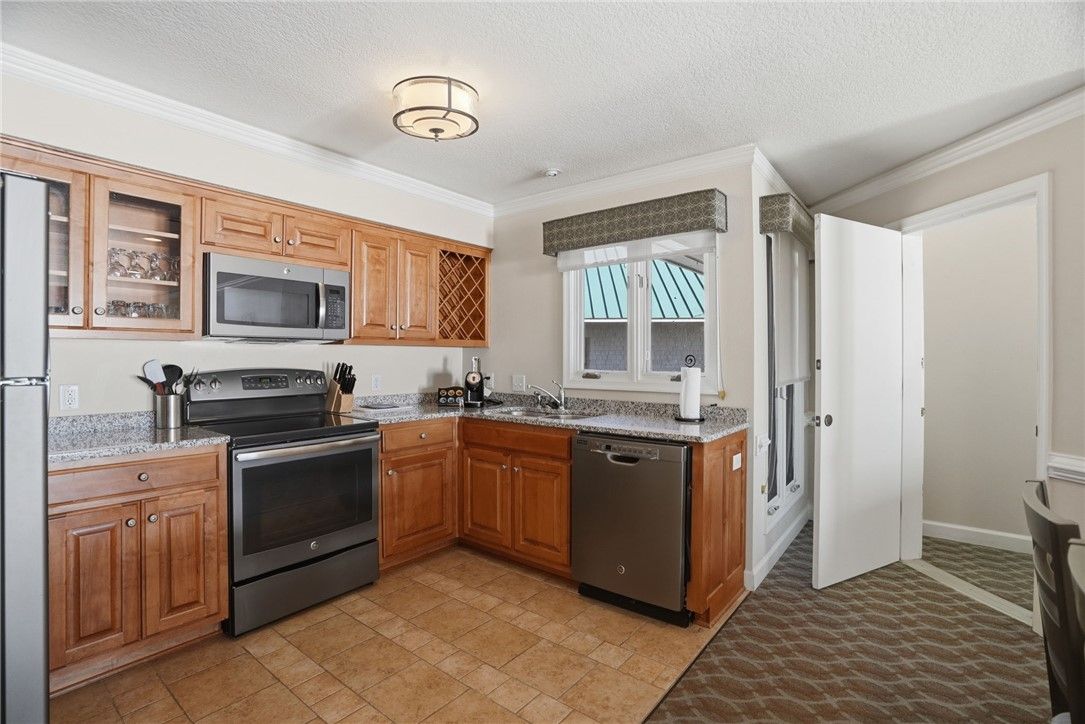 - Washer/Dryer Stacked, Dishwasher, Electric Water Heater, Disposal, Microwave, Range, Refrigerator