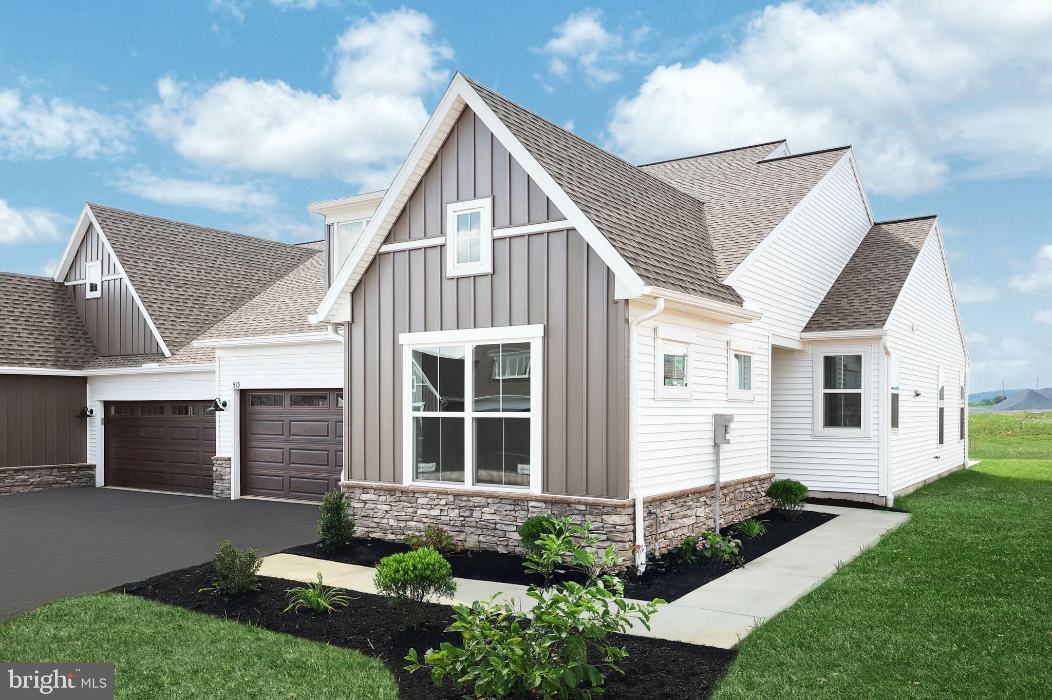 Landmark’s new duplex at Winding Creek 55+ is a thoughtfully designed 1-story home with 2 bedrooms, 2 full baths and a 2-car garage. The private side entry opens to the foyer and a formal dining room. The kitchen is well-equipped with stainless steel appliances, quartz countertops, a tile backsplash, and a large pantry. The great room features a cathedral ceiling with wooden beams. Both bedrooms are tucked quietly to the back of the home. The owner’s suite has an oversized closet and a private bathroom with a tile shower.