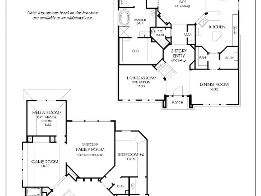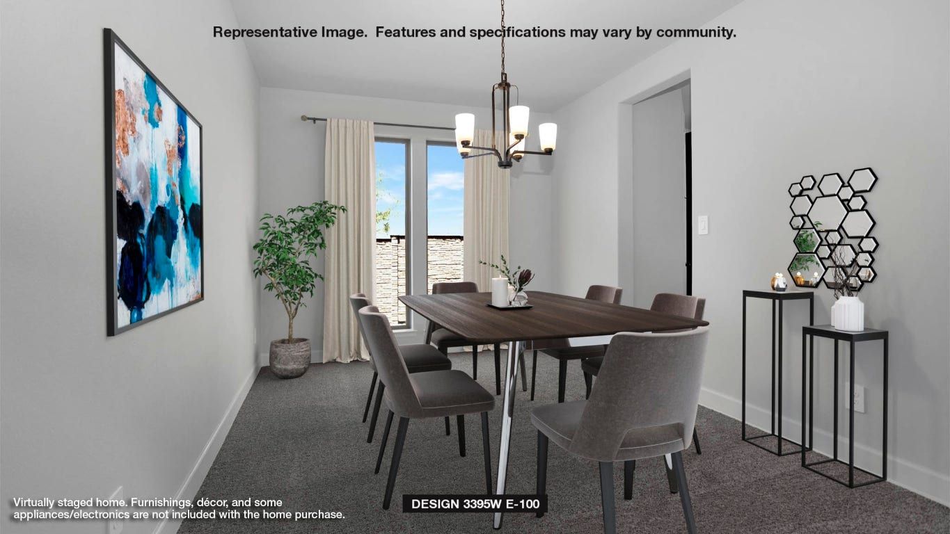 Home office with French doors set at entry with 20-foot ceiling. Formal dining room opens to rotunda with curved staircase. Two-story family room with 18-foot ceiling and a sliding glass door opens to kitchen and morning area. Kitchen hosts generous island with built-in seating space and 5-burner gas cooktop. Primary suite with a wall of windows. Primary bath includes dual vanity, freestanding tub, separate glass-enclosed shower and large walk-in closet with access to utility room. First-floor guest suite. A game room, media room and two secondary bedrooms are upstairs. Extended covered backyard patio. Mud room off three-car garage.