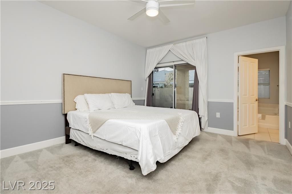 Discover your hidden retreat in a charming two bedroom two bathroom townhome located in a desirable guard gated senior community in Las Vegas. This inviting home offers a spacious kitchen with abundant storage, generous counter space, a built in oven, and a cooktop. The primary suite features an ensuite bath with a soaking tub, standing shower, walk in closet, and plenty of storage. Enjoy direct access to the backyard from the primary bedroom. Sliding doors open to your private outdoor oasis with a covered patio, perfect for quiet mornings or relaxing evenings.