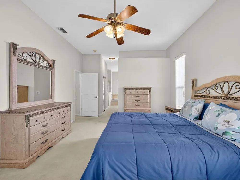 - Attic Ventilator, Ceiling Fan(s), Kitchen/Family Room Combo, Living/Dining Room, Main Level Primary, Split Bedrooms, Vaulted Ceiling(s)