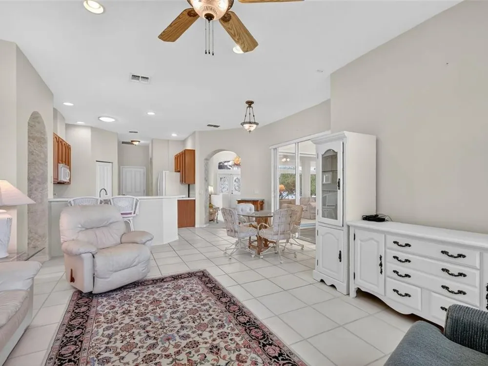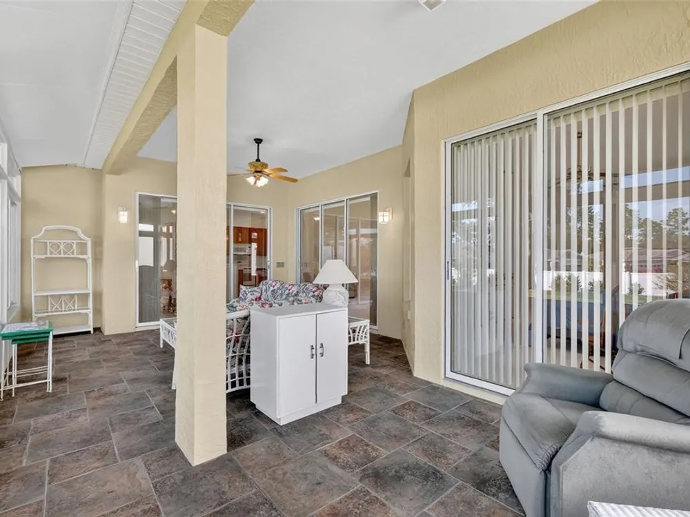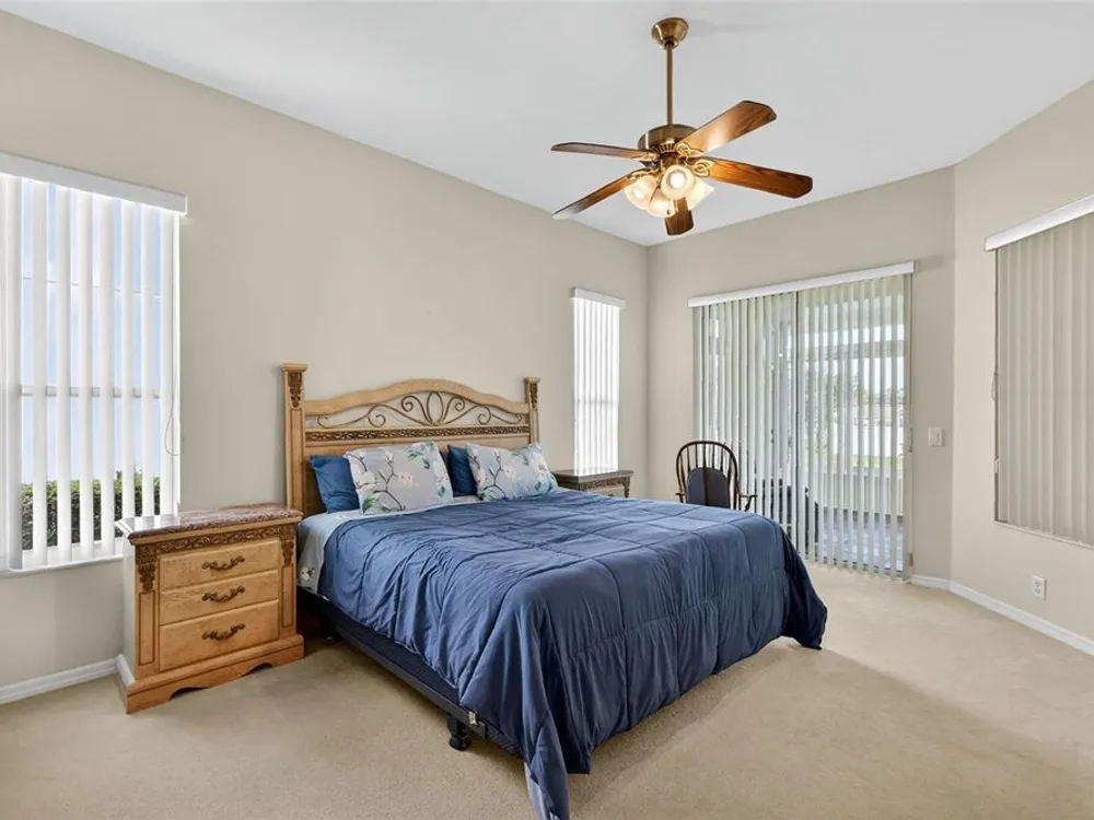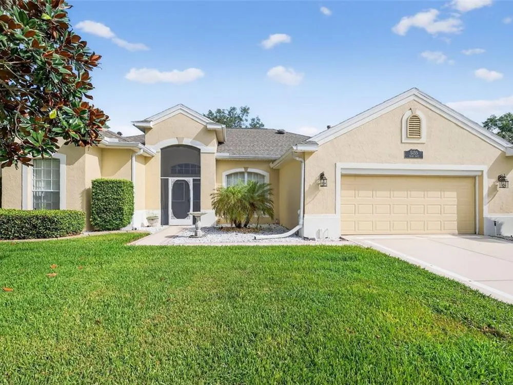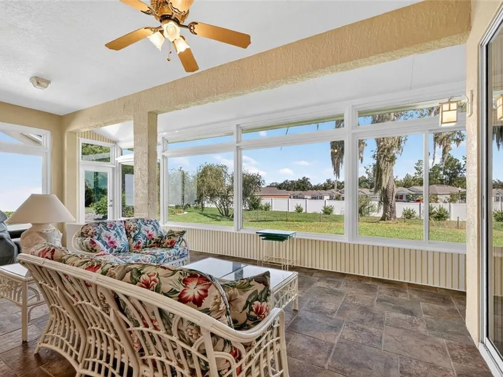 Amazingly nice custom Savannah/Scarsborough model in desirable Legacy of Leesburg. This immaculately kept home is truly "like new" with beautiful features everywhere! Leaded glass double door entry, vaulted ceilings, expanded interior and garage space, enclosed lanai with large clear windows that provides lots of light. Triple sliding doors highlight the handsome living room and also the ceramic tiled family room. Tasteful gourmet kitchen features oak 42" cabinetry, closet pantry and amazing walk-in custom storage area, appliances, plus washer/dryer. Besides the large family room, breakfast nook, and living room, there's also a formal dining area. This split plan home features a beautiful master suite with many windows and private sliding doors to lanai, two expansive walk-in closets, and designer custom bath that houses a jetted tub, walk-in "Roman" shower, both with custom tilework and pretty listello trim. Dual sink vanity is also oak. Your guests will be comfortable in two private, expanded bedrooms and adjacent spa bath. The garage has been improved by added sq. ft., side utility door, laundry with sink and separate a/c. Enjoy an active lifestyle here! All of this in upscale Legacy, home to miles of walking/biking trails and acres devoted to wildlife conservation. Full complement of amenities includes designer heated pool/spa, fitness and so much more. Low HOA includes mowing, cable and all the fun, just waiting for you to enjoy this quiet peaceful retreat. (New Roof in 2020, AC in 2018) Come home to Leesburg, Florida!!