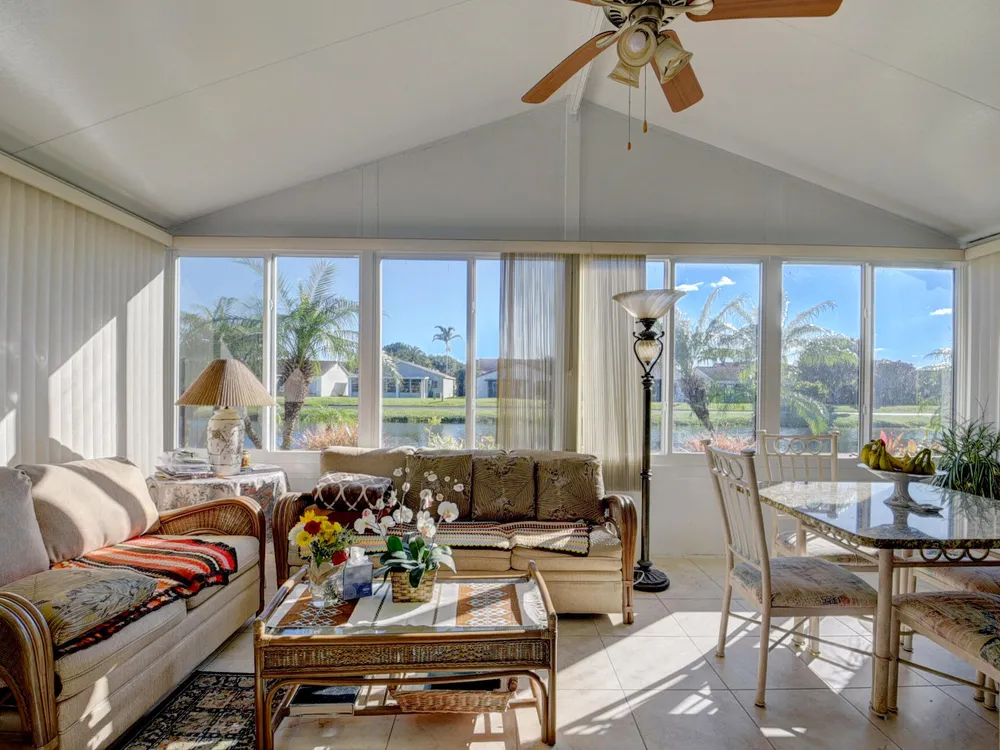 Priced to SELL! Waterfront 2BR 2BA w/ garage & lovely impact glass-enclosed FL room. ''Sweat equity'' opportunity in very popular Boynton Beach 55+ HOPA community, just bring some paint & your TLC. Numerous improvements include wooden cabinets/granite counters and updated lighting in kitchen and both baths. Poured concrete driveway, pull down ladder for access to plenty of attic storage space. Charming community is gated, w/ just 238 homes, & features tree lined streets, plenty of green spaces, waterfront walking promenades, lakefront pool, tennis/pickleball, boat ramp and more. LOW HOA fee includes lot irrigation, cable/internet. Very well located to 3 Int'l airports, highways, houses of worship, BEACH and walkable to shopping, restaurants. Come see today!