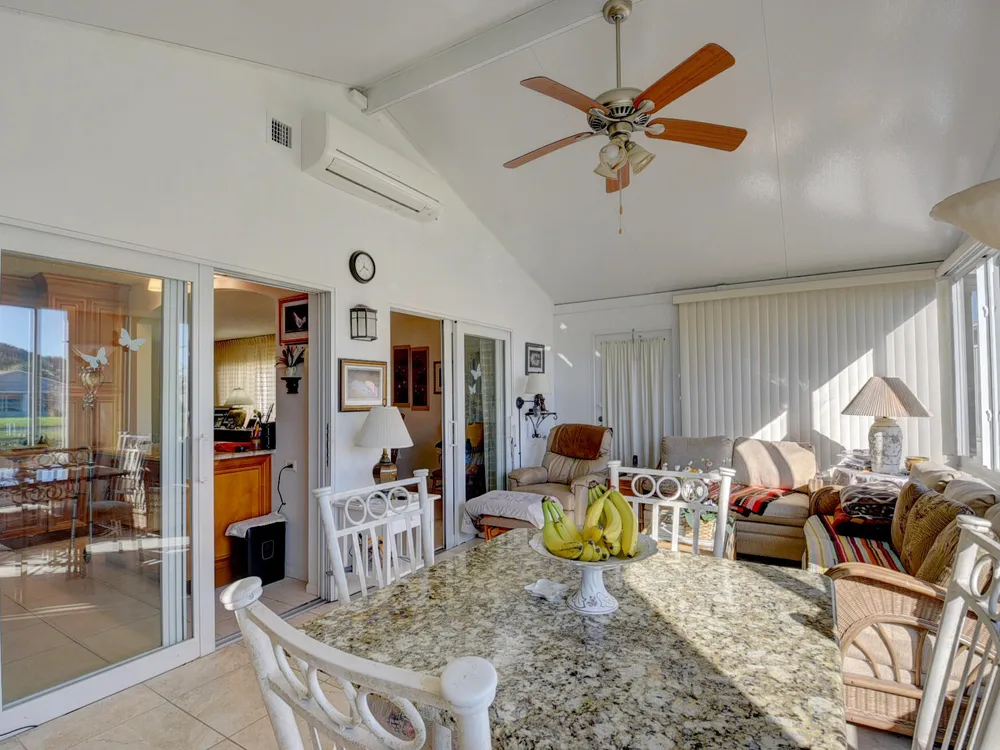 - Entry Level Living Area, Pull Down Attic Stairs, Split Bedrooms, Attic, Florida Room, Living/Dining Room, Snack Bar, Blinds, Storm Window(s), Impact Glass, Window Vertical(s), Primary Downstairs, Separate Shower, Storm Shutters