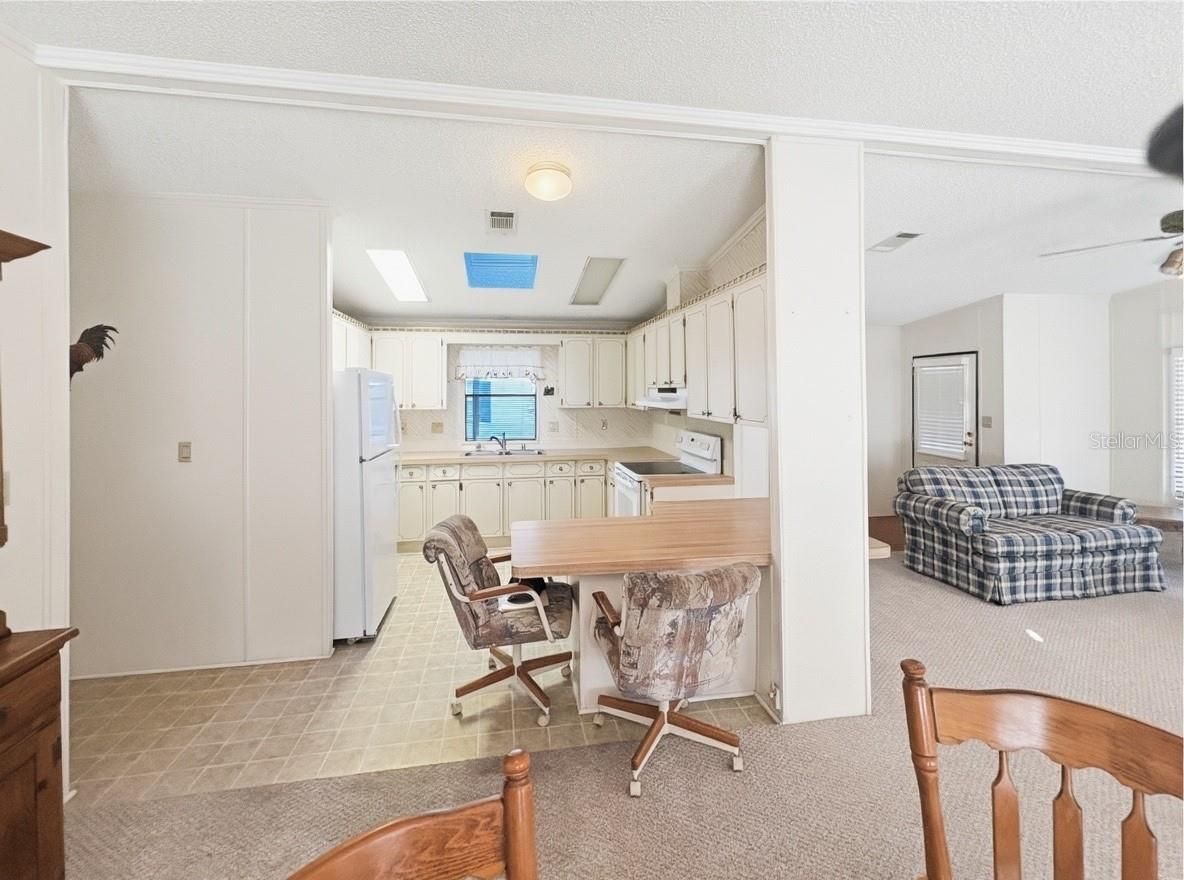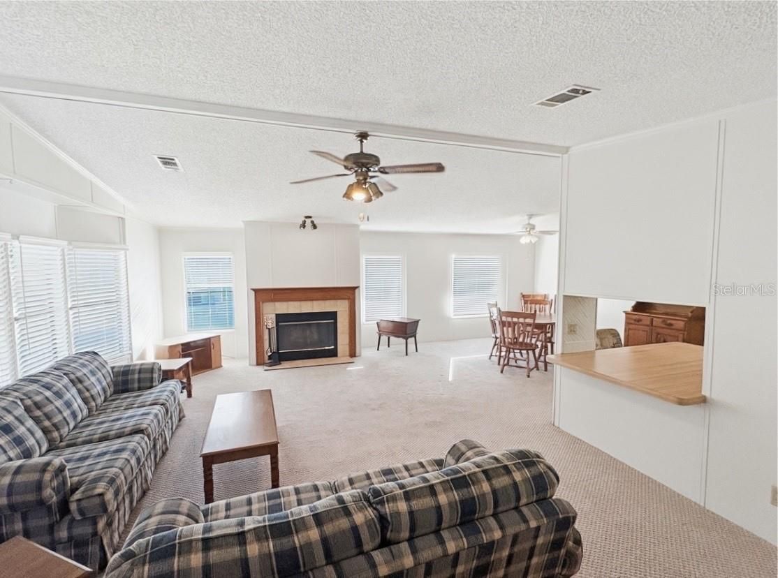 Welcome to this inviting home offering nearly 1,400 square feet of comfortable living space, perfectly designed for both everyday living and entertaining. A standout feature is the expansive screened lanai—ideal for hosting friends, relaxing outdoors, and enjoying Florida living year-round. Inside, the open floor plan creates a seamless flow between the spacious living and dining room combination, providing plenty of room for gatherings. The well-appointed kitchen overlooks the living area, making it easy to stay connected with guests while cooking. Both bedrooms are generously sized and feature walk-in closets, offering ample storage and comfort. An interior utility room adds versatility and can easily serve as a home office, hobby space, or additional storage area. Step outside to find a hurricane-proof shed in the backyard—perfect for extra storage and added peace of mind during storm season. This home blends functionality, comfort, and great entertaining spaces—ready for you to move in and make it your own. The community is absolutely gorgeous with countless amenities, which include: large swimming pool with hot tub, 18 hole championship golf course, driving range and putting greens, shuffleboard, tennis, pickle ball, fitness center, iibrary, billiards room, softball field, and a 5 star restaurant and lounge. What more can you ask for? This is a beautiful home in a beautiful community. You won't be disappointed!!!!