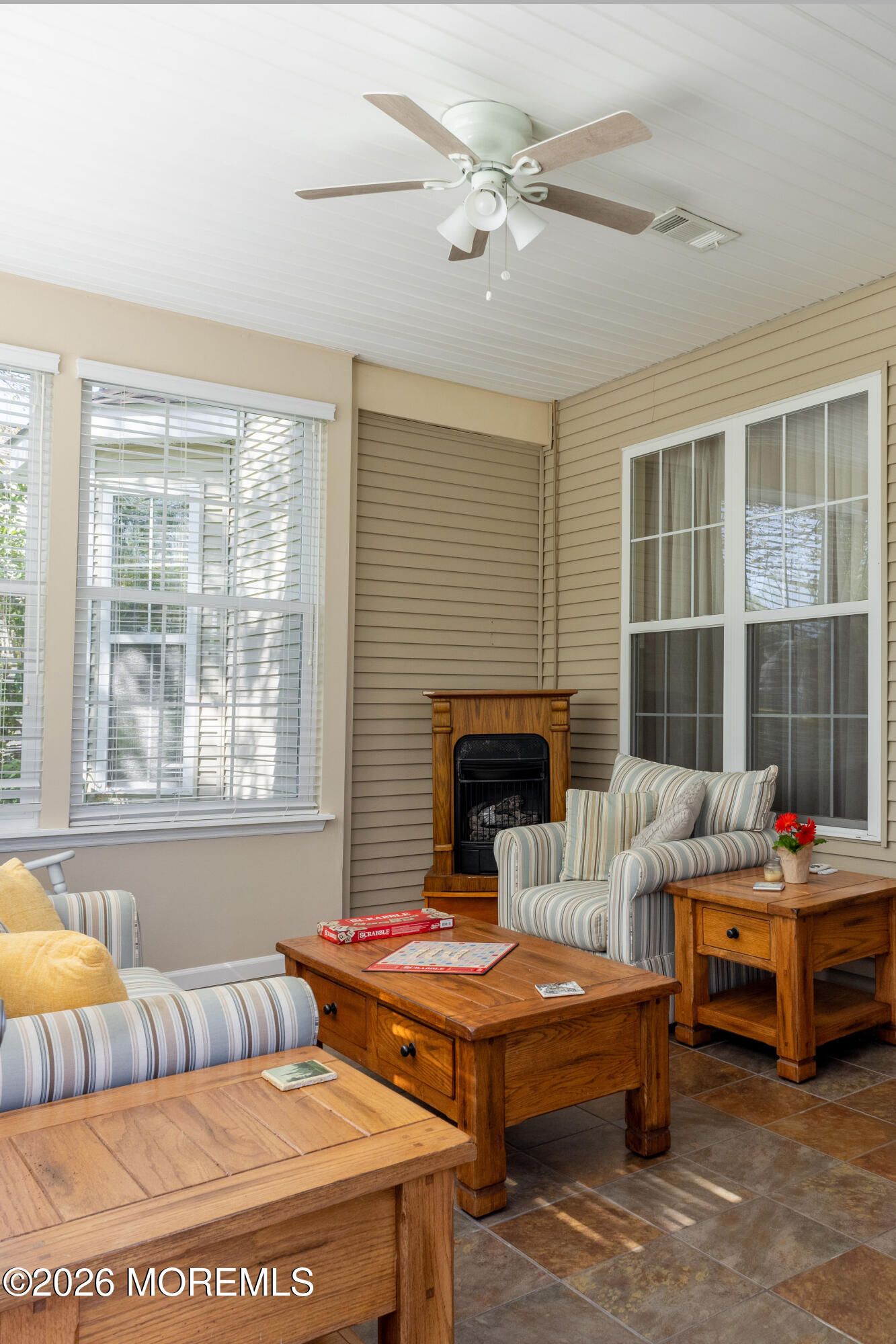 Incredible opportunity--an exquisite Juniper model home at Four Seasons Smithville that might just be what you're looking for. This stunning home features:- 2 spacious bedrooms- A convenient 2-car garage- 2 full baths. The cozy family room is equipped with a gas fireplace, creating the perfect ambiance for relaxing evenings or entertaining guests. You'll also love the bonus four-season room that opens up to a charming partial paver patio. Additionally, you'll find that the roof was replaced approximately 3 years ago. The location is fantastic, as it is within walking distance to the active Clubhouse, which boasts both indoor and outdoor pools.