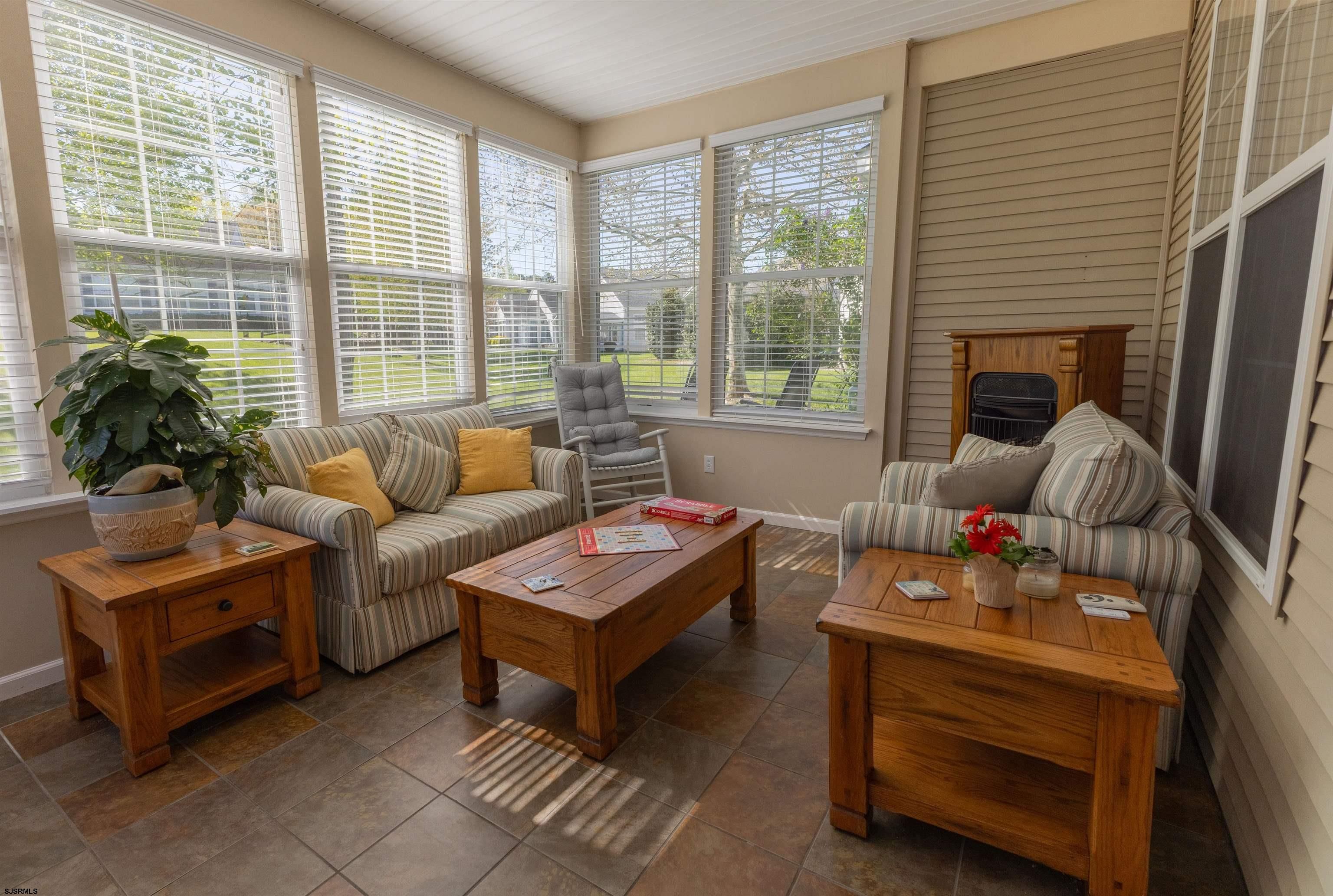Incredible opportunity—an exquisite Juniper model home at Four Seasons Smithville that might just be what you're looking for. This stunning home features:- 2 spacious bedrooms- A convenient 2-car garage- 2 full baths. The cozy family room is equipped with a gas fireplace, creating the perfect ambiance for relaxing evenings or entertaining guests. You'll also love the bonus four-season room that opens up to a charming partial paver patio. Additionally, you'll find that the roof was replaced approximately 3 years ago. The location is fantastic, as it is within walking distance to the active Clubhouse, which boasts both indoor and outdoor pools.