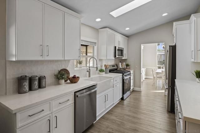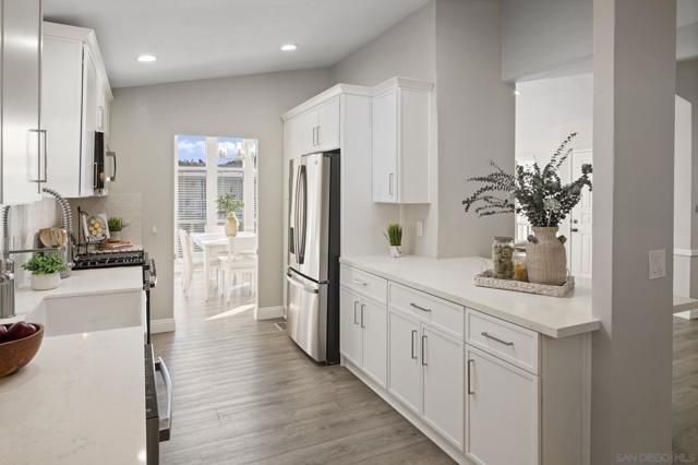 Welcome to Rancho Carlsbad, a highly sought-after private, gated 55+ community in the heart of coastal Carlsbad, California. This recently updated home is ideally situated along the coveted Calavo Creek, offering exceptional privacy and serene natural surroundings. Featuring 3 bedrooms, 2 bathrooms, and approximately 1,931 square feet of spacious living, the home welcomes you with vaulted ceilings and abundant natural light. The beautifully remodeled kitchen showcases all-new slim-shaker cabinetry, quartz countertops, a large farmhouse sink, and new stainless-steel appliances, including a gas range with griddle. The thoughtful floor plan offers two living areas and two dining spaces, perfect for both entertaining and everyday comfort. The primary suite includes generous closet space, and both the primary and secondary bathrooms have been tastefully updated. Additional highlights include updated luxury vinyl plank flooring throughout, a newer HVAC system, water heater, and a new roof installed in 2021. Enjoy outdoor living from the covered front porch or relax on the private flagstone patio overlooking the creek bed—an ideal setting to unwind and enjoy nature. A spacious outdoor storage shed adds extra convenience. No space rent. You own the land. Rancho Carlsbad offers a vibrant lifestyle with resort-style amenities, including pickleball and tennis courts, a heated pool and spa, fitness center, billiards and game rooms, banquet facilities, and more. RV parking is also available. Don’t miss this rare opportunity to own a beautifully updated home in one of Carlsbad’s most desirable communities—a true piece of paradise.